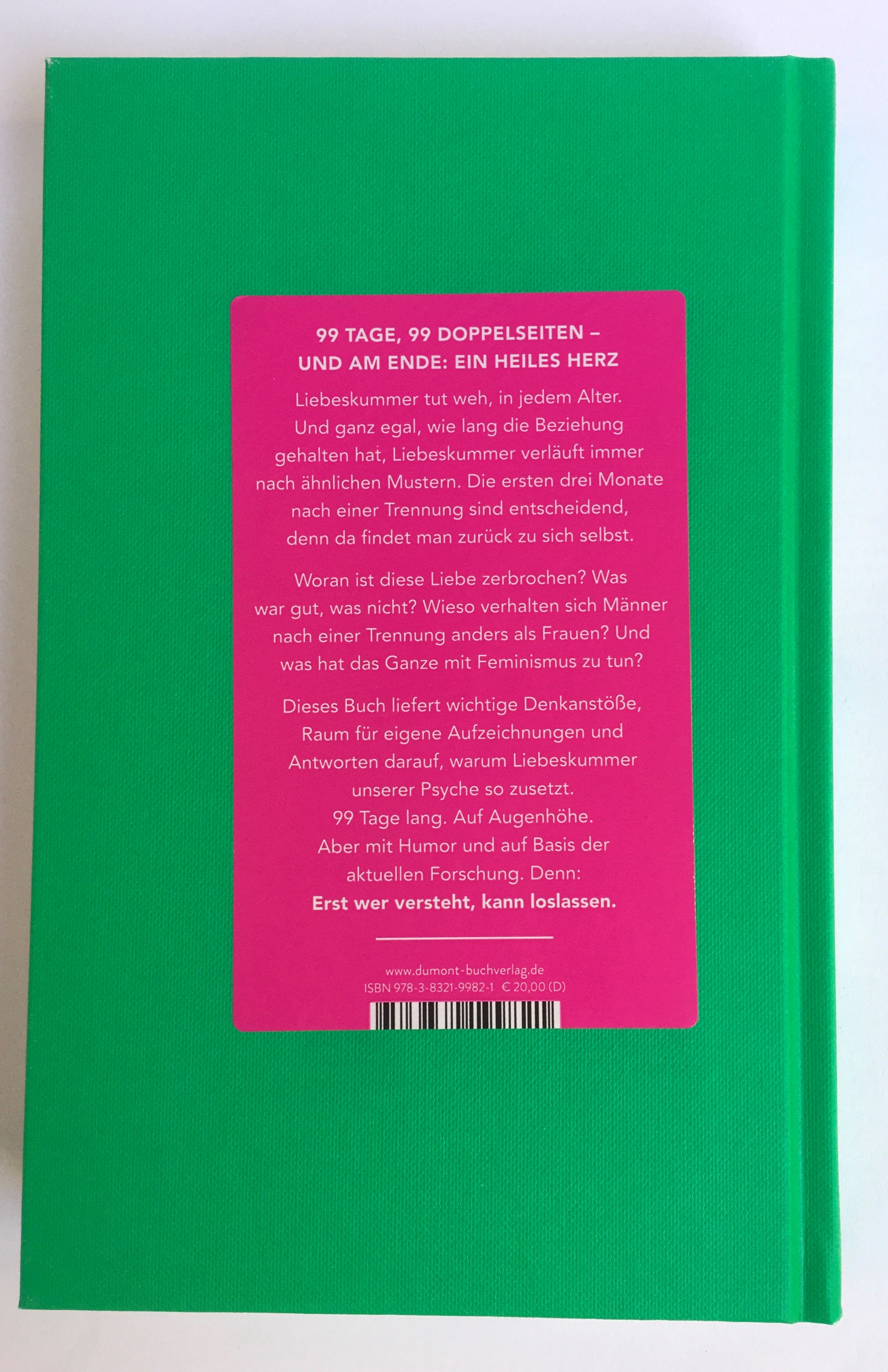 Eingeteilt in drei Blöcke – Zurückerinnern, Kompensieren, Loslassen – liefert dieses Buch entscheidende Denkanstöße, genügend Raum für eigene Aufzeichnungen und Antworten darauf, warum unsere Psyche in Liebeskummerangelegenheiten nicht so funktioniert, wie sie sollte. 99 Tage lang. Auf Augenhöhe. Aber mit Humor und auf Basis der aktuellen Forschung. Denn: Erst wer versteht, kann loslassen.