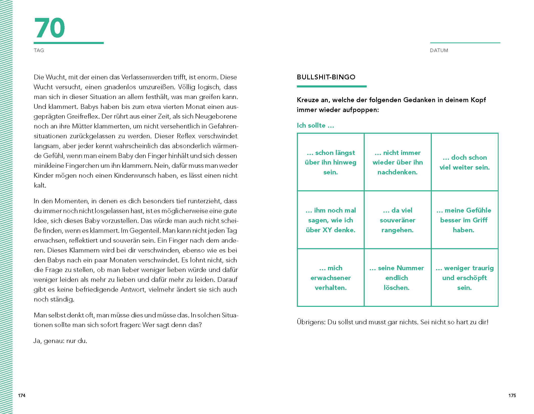 »Das Buch für Frauen [bei Liebeskummer], ein Werk, das irgendwas ist zwischen Ratgeber, Tagebuch und bester Freundin.«