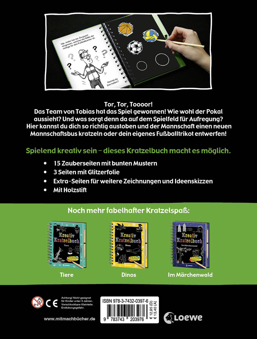 In diesem Kratzelbuch können sich Fußballfans so richtig austoben. Köpfen wie die Profis und ein eigenes Mannschaftstrikot kreieren – hier ist alles möglich. Auch ein neuer Mannschaftsbus sorgt für Aufregung. Perfekt für kleine und große Fußballfreunde!