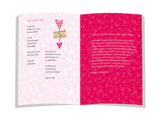 Ein liebevoller Gruß für Menschen, die einfach da sind,wenn man sie braucht, und ein herzerfrischendes Lobauf die Freundschaft. Mit Texten von Ulrich Schaffer, EvaStrittmatter, Marie Luise Kaschnitz, Rose Ausländer u. a.