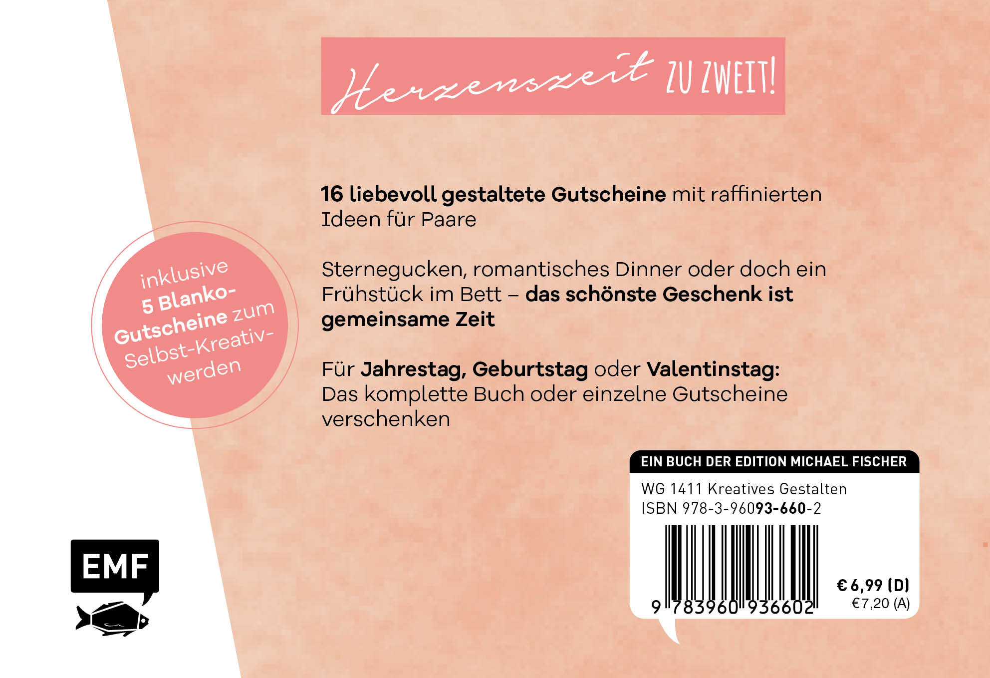 Du bist das Beste, was mir je passiert ist - und daher soll jeder Moment mit Dir etwas ganz Besonderes sein! Mit den 16 liebevoll gestalteten Gutscheinen zum Selbst-Ausfüllen lassen sich ganz besondere Erlebnisse verschenken - vom romantischen Sonnenuntergang bis zum Picknick am Strand. Die Gutscheine lassen sich als komplettes Buch oder einzeln verschenken. Die angesagte Polaroid-Optik machen sie zum einzigartigen Geschenk für den allerliebsten Lieblingsmensch - zum Jahrestag, Valentinstag oder einfach nur so!