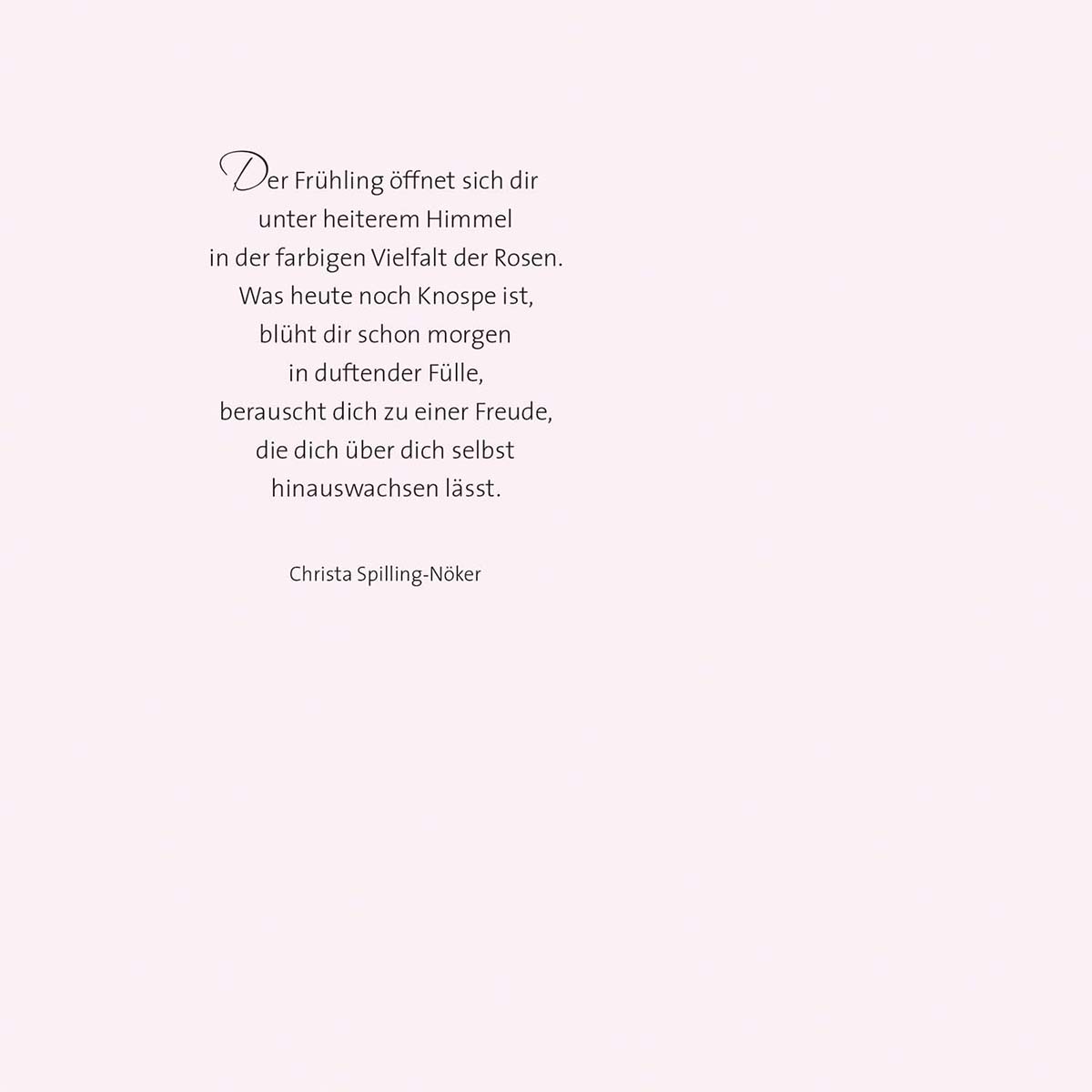 In diesen stimmungsvollen Grußkarten sind wunderbare Gedichte der Pfarrerin und Autorin Christa Spilling-Nöker als poetische Umschreibung der Jahreszeiten und derer jeweiligen Blumen zu lesen - u. a. mit violett-leuchtenden Krokussen im Frühjahr, des milden Frühlings zarte Veilchen und Maiglöckchen, im Sommer strahlende Sonnenblumen, sowie farbenprächtige Herbst-Chrysanthemen. Jede ihrer Botschaften wird zudem durch eindrucksvolle Fotografien malerisch umrahmt, um damit Ihren Worten einen besonderen Ausdruck zu verleihen. Ein weiteres Highlight ist die dazu erhältliche Kartenbox, die später z. B. auch zur Aufbewahrung persönlicher Utensilien verwendbar ist und die Blumenkarten zu einem schönen Mitbringsel für Freunde der Natur, der Lyrik, oder für passionierte Hobbygärtner macht. (8 Klappkarten, 12 × 17 cm, mit Einlegeblatt und Umschlag, in Box, 13 × 18 × 3 cm)