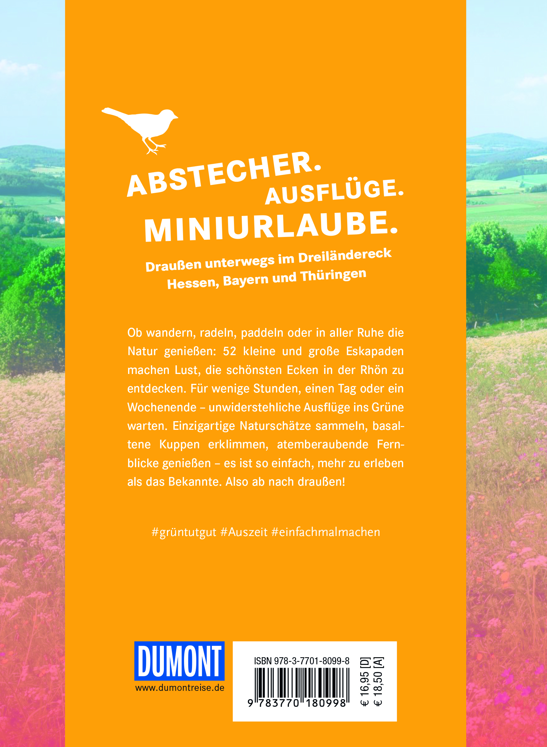 Ob wandern, radeln, paddeln oder in aller Ruhe die Natur genießen: 52 kleine und große Eskapaden machen Lust, die schönsten Ecken in der Rhön zu entdecken. Für wenige Stunden, einen Tag oder ein Wochenende - unwiderstehliche Ausflüge ins Grüne warten. Einzigartige Naturschätze sammeln, basaltene Kuppen erklimmen, atemberaubende Fernblicke genießen - es ist so einfach, mehr zu erleben als das Bekannte. Also ab nach draußen!