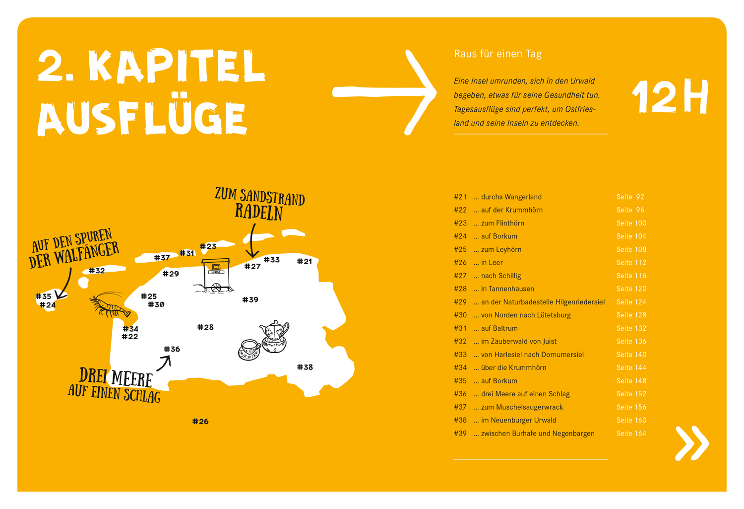 Ob wandern, radeln, paddeln oder in aller Ruhe die Natur genießen: 52 kleine und große Eskapaden machen Lust, die schönsten Ecken in Ostfriesland zu entdecken. Für wenige Stunden, einen Tag oder ein Wochenende - unwiderstehliche Ausflüge ins Grüne warten. Knisterndem Watt zuhören, an langen Sandstränden entlangwandern oder in verwunschenen Mooren träumen - es ist so einfach, mehr zu erleben als das Bekannte. Also ab nach draußen!