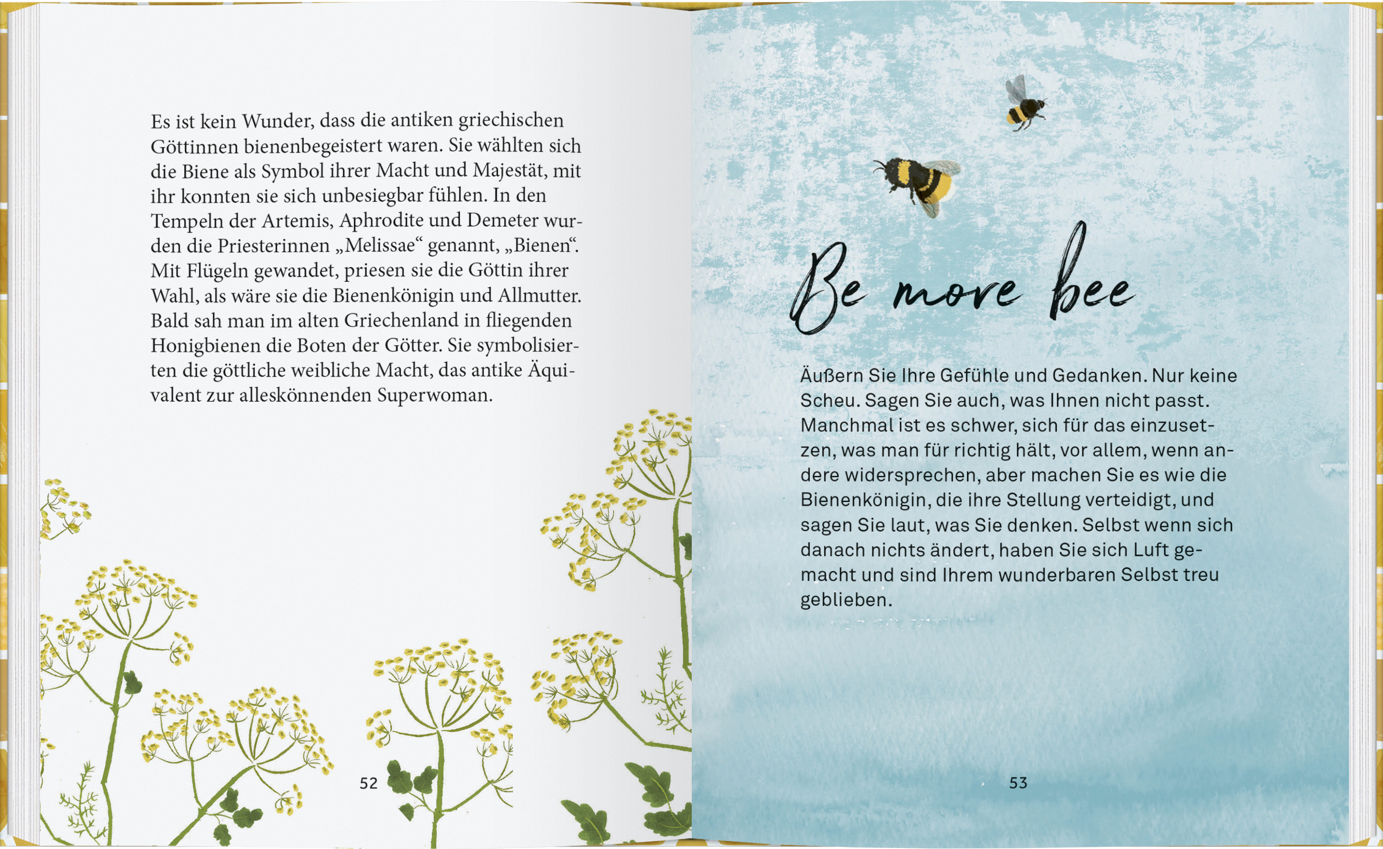 Lass dich von Bienen inspirieren - ein augenzwinkernder Ratgeber, der das vorbildliche Leben der Bienen als Leitfaden für unser Leben beschreibt; zauberhaft illustriert und als Geschenk nicht nur für Imker geeignet.