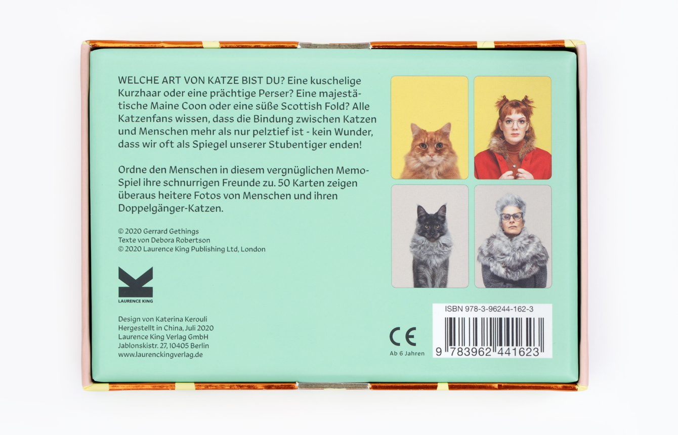 | Schlagworte | Ähnlichkeiten • Bildpaare • Cat Lovers • Familienspiel • Humor • Katzen • Katzenliebhaber • Memo • Memospiel • Paare finden • Persönlichkeiten • Portraits • Tierfotografie • Tierportraits |