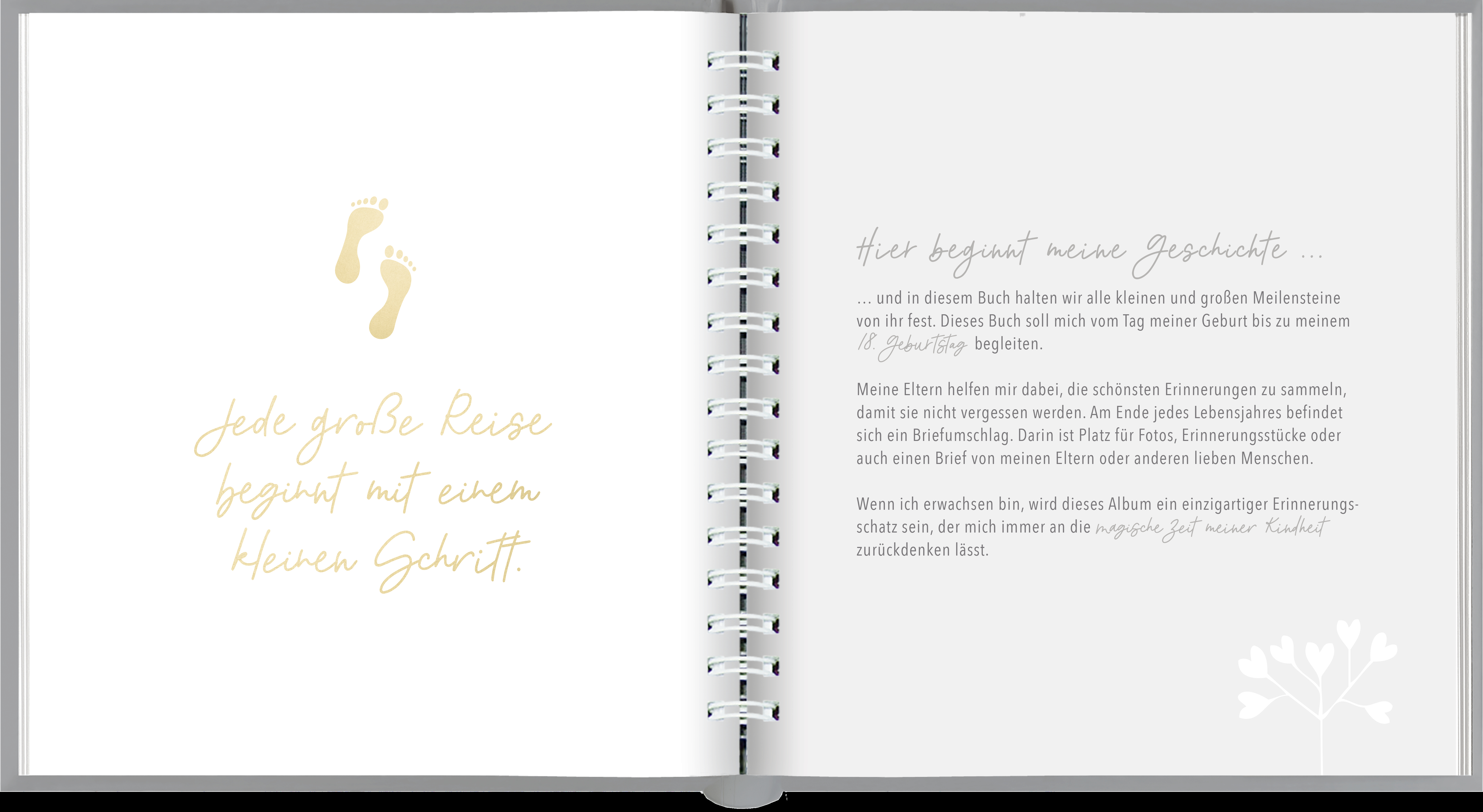 Das großformatige Erinnerungsalbum bietet viel Platz für Fotos und all die wunderbaren Erinnerungen vom Tag der Geburt bis zum 18. Geburtstag. Dazu gibt es Anregungen zum Sammeln von Lieblingsrezepten, den schönsten selbst gemalten Bildern und vielem mehr. Das Erinnerungsalbum enthält außerdem 18 eingeklebte Briefumschläge für eine persönliche Nachricht oder ausführliche Erinnerungen zu jedem Lebensjahr. So wird das ausgefüllte Erinnerungsbuch zu einem einzigartigen Geschenk zum 18. Geburtstag, zum Auszug oder zur Hochzeit.