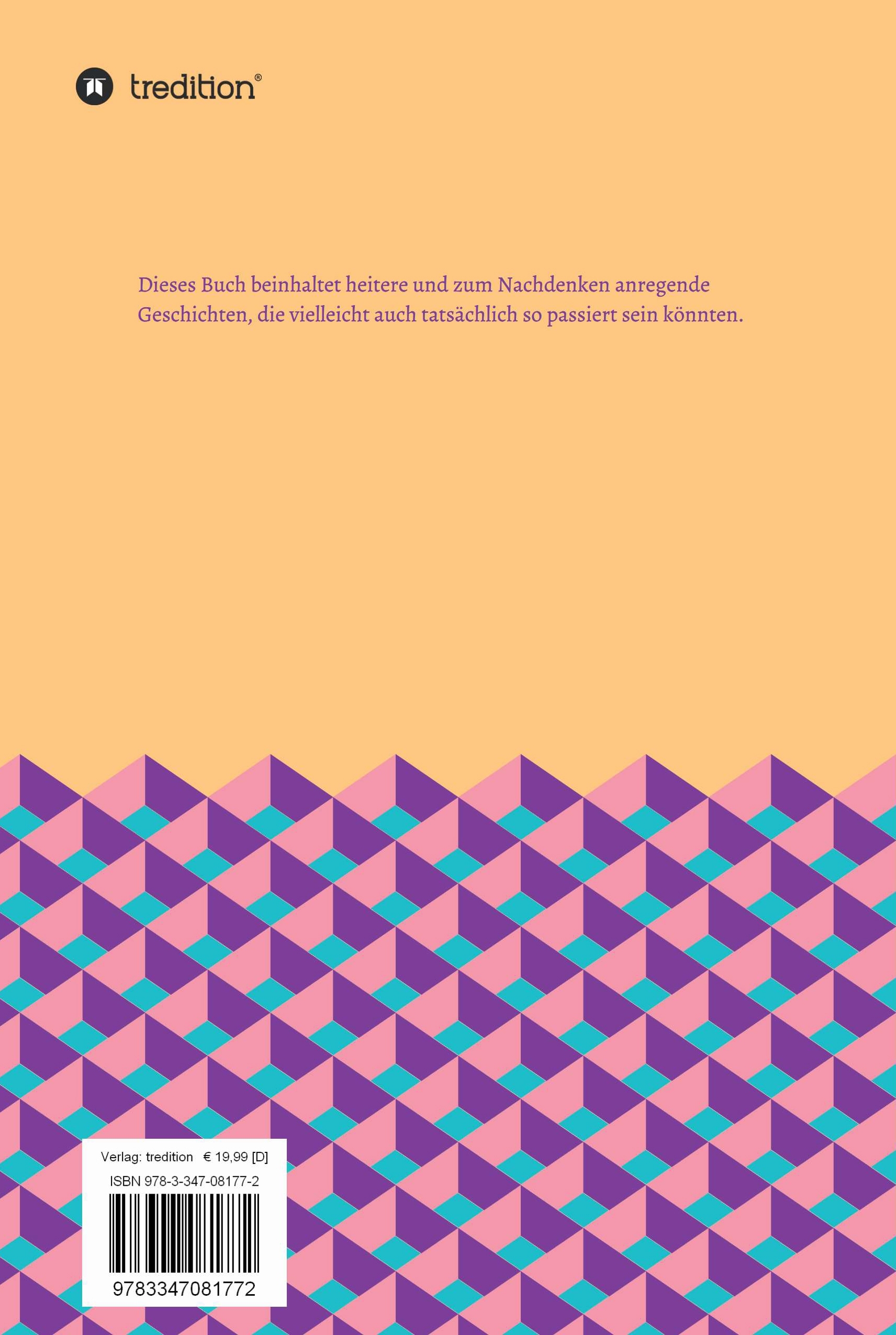 Dieses Buch beinhaltet heitere und zum Nachdenken anregende Geschichten, die vielleicht auch tatsächlich so passiert sein könnten.