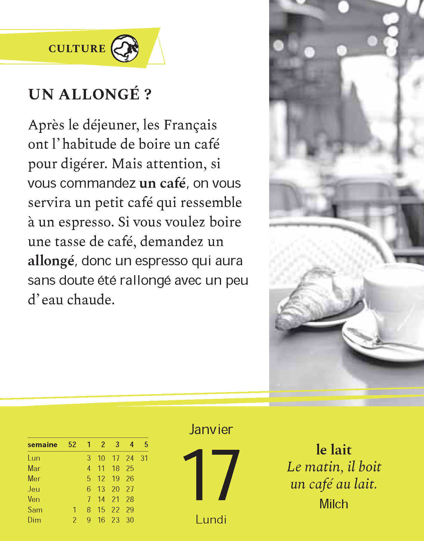 Täglich 5 bis 10 Minuten Lernspaß mit dem Französisch-Sprachkalender 2022!