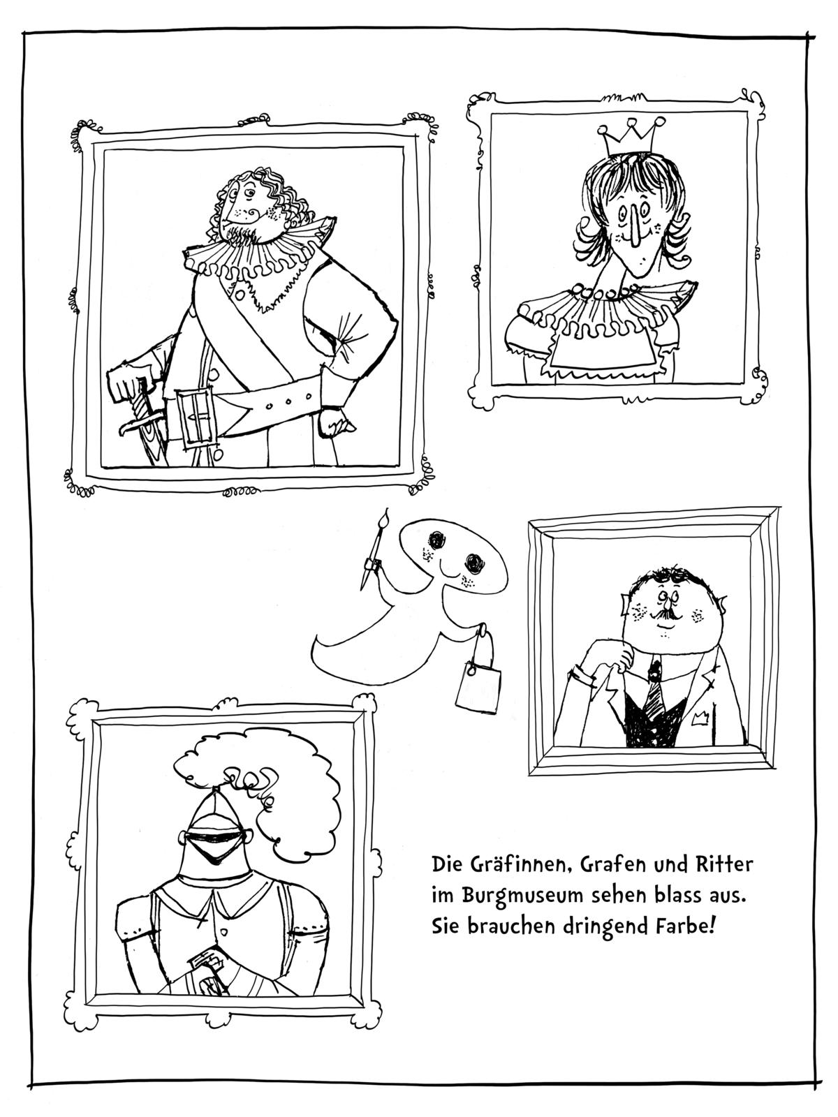 Mit 28 Malvorlagen laden das kleine Gespenst, der Uhu Schuhu und viele andere liebgewonnene Figuren aus dem Kinderbuch "Das kleine Gespenst" zum Ausmalen und Weitermalen ein: Wie sehen die Gespenster-Freunde vom kleinen Gepenst aus? Oder: Male dicke Spinnen in die Netze auf dem Dachboden und verpasse den Gemälden im Burgmuseum ein neues Aussehen. Hier ist alles erlaubt.