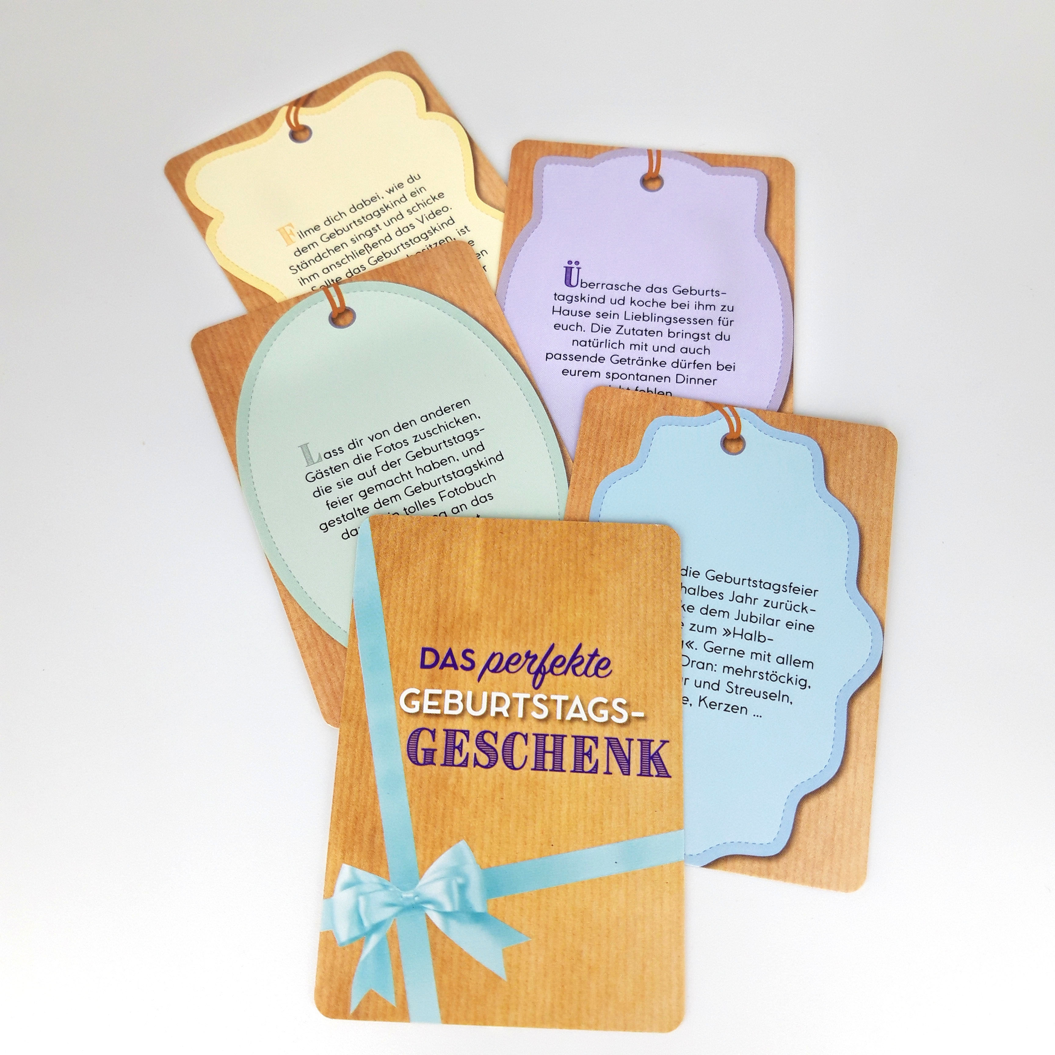 Das perfekte Geburtstagsgeschenk zu finden, ist gar nicht so leicht. Zum Glück gibt es dieses Kartendeck mit 55 Ideen für einmalige und persönliche Geschenke, die dem Jubilar nicht nur an seinem Ehrentag Freude bereiten, sondern das ganze Jahr über. Denn jeder Gast bekommt am Tag der Feier eine individuelle Aufgabe, die er für das Geburtstagskind im Laufe des Jahres übernimmt. Sei es das Ausrichten eines dekadenten Brunchs oder das Aufräumen nach der Geburtstagsparty. So versüßen alle zusammen dem Geburtstagskind das neue Lebensjahr.