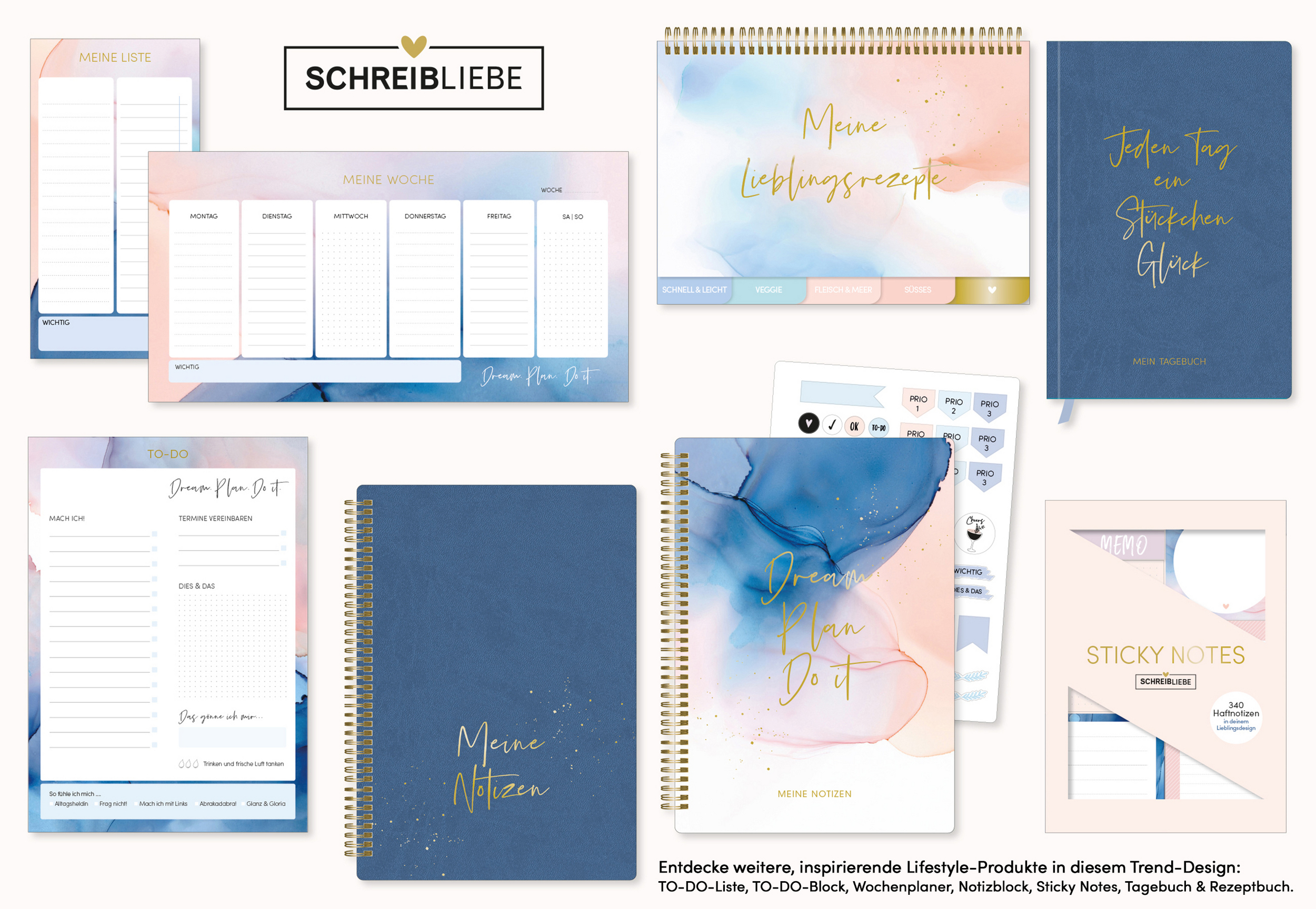 Entdecke weitere, inspirierende Lifestyle-Produkte in diesem Trend-Design: TO-DO-Liste, TO-DO-Block, Wochenplaner, Notizblock, Sticky Notes, Tagebuch und Rezeptbuch.