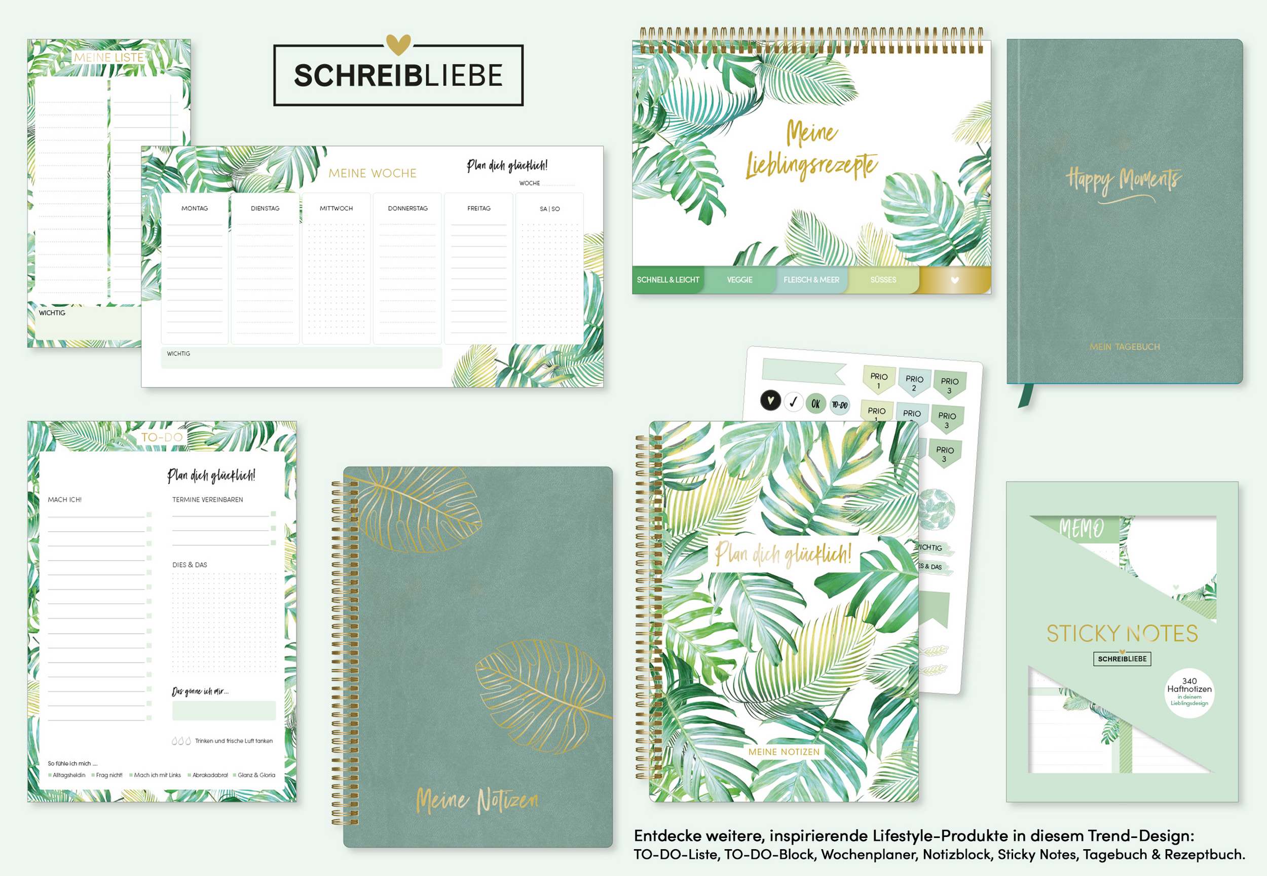 Entdecke weitere, inspirierende Lifestyle-Produkte in diesem Trend-Design: TO-DO-Liste, TO-DO-Block, Wochenplaner, Notizblock, Sticky Notes, Tagebuch und Rezeptbuch.