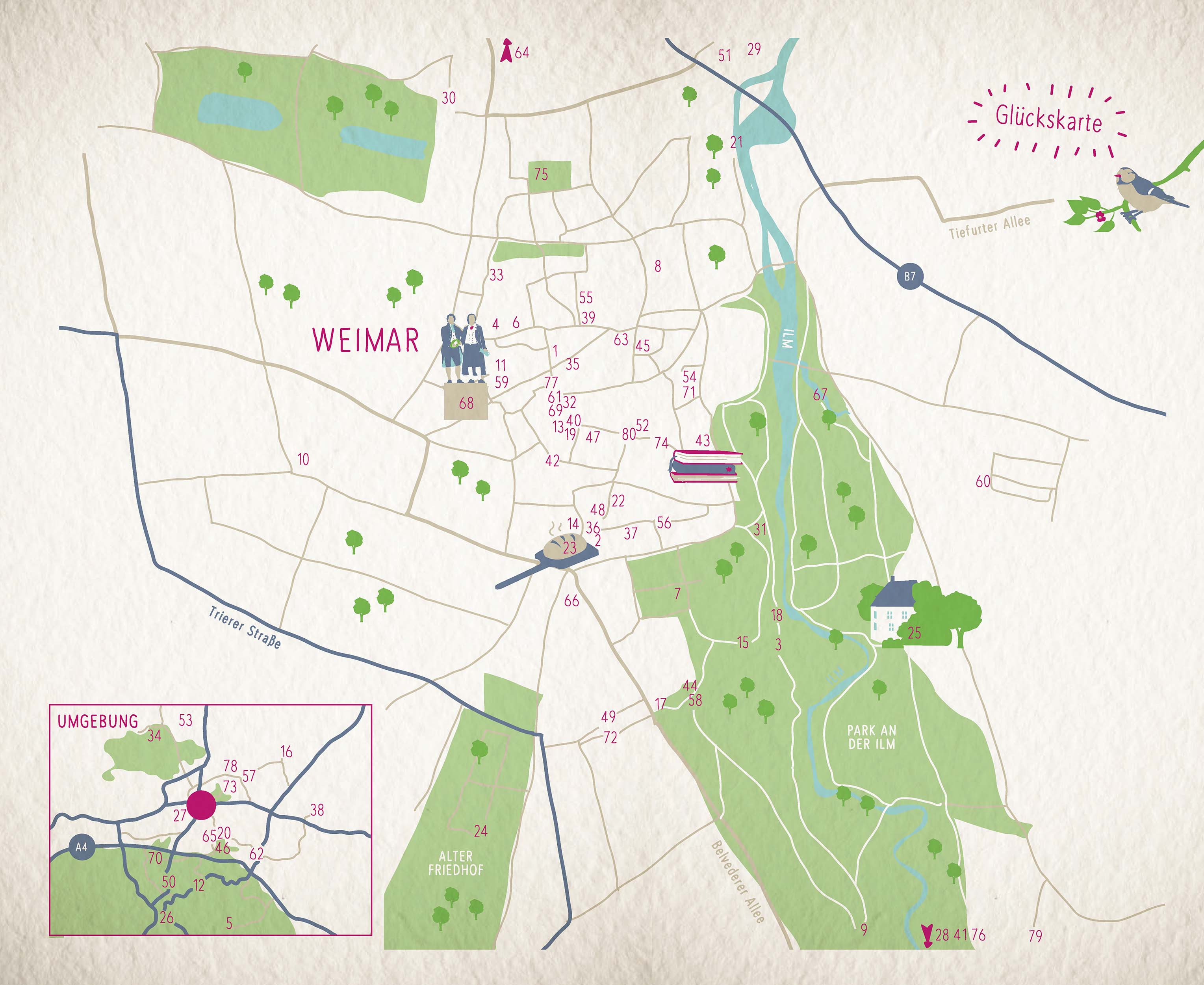 Weimar: Das ist klassische Literatur rund um Goethe und Schiller, das ist virtuose Musik rund um Liszt, das ist so viel mehr! Von der Kuchenmanufaktur über den Mühlenladen bis zur Teeboutique, vom Bauhaus bis zum Kunstfest findet hier wirklich jeder sein Glück. Zwischen Ilmpark und Kirschbachtal, zwischen Bad Berka und Schloss Ettersburg warten wunderbare Plätze voller Geschichte und Geschichten und Orte, die gleichermaßen inspirieren, beruhigen und die Seele bereichern.