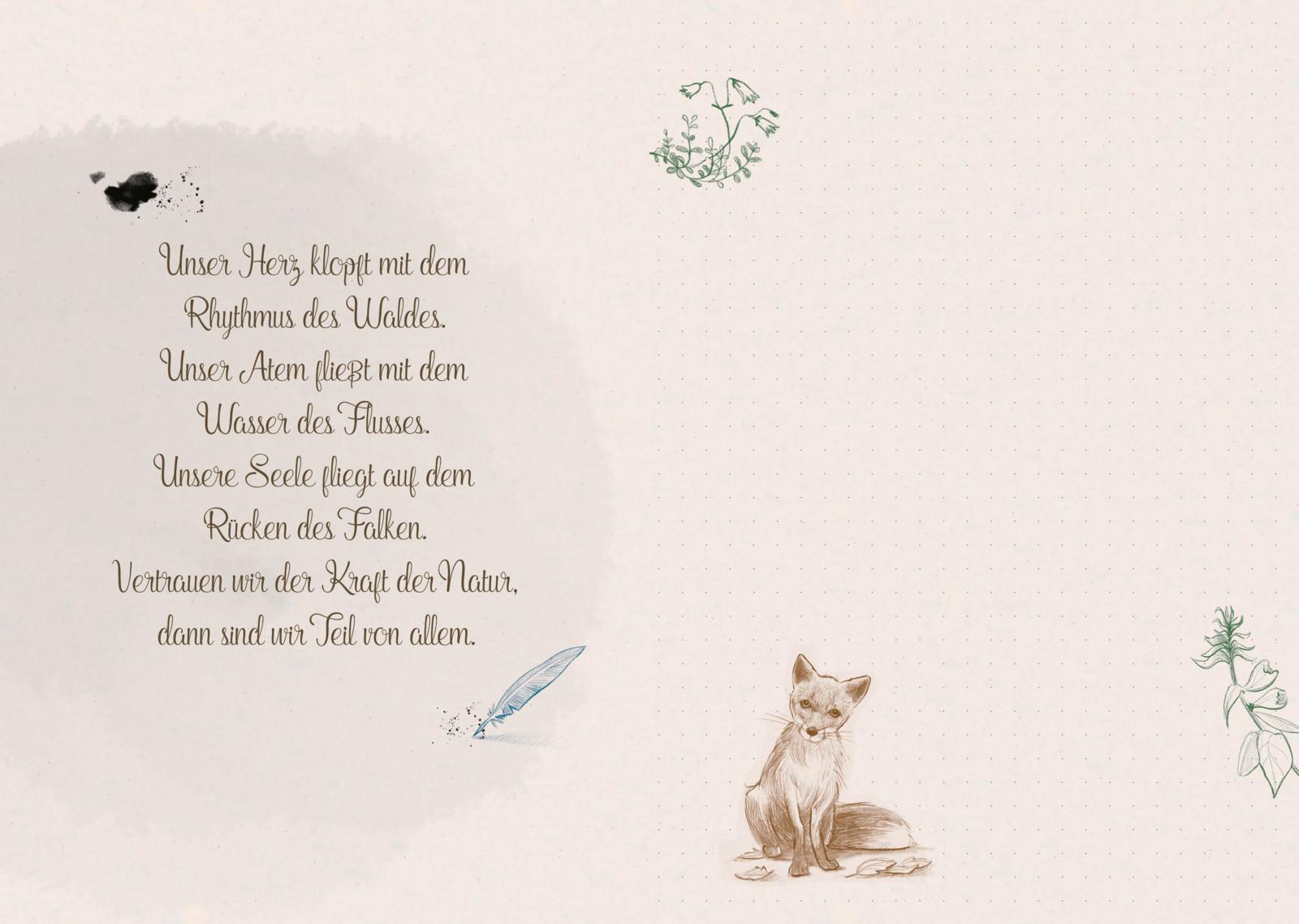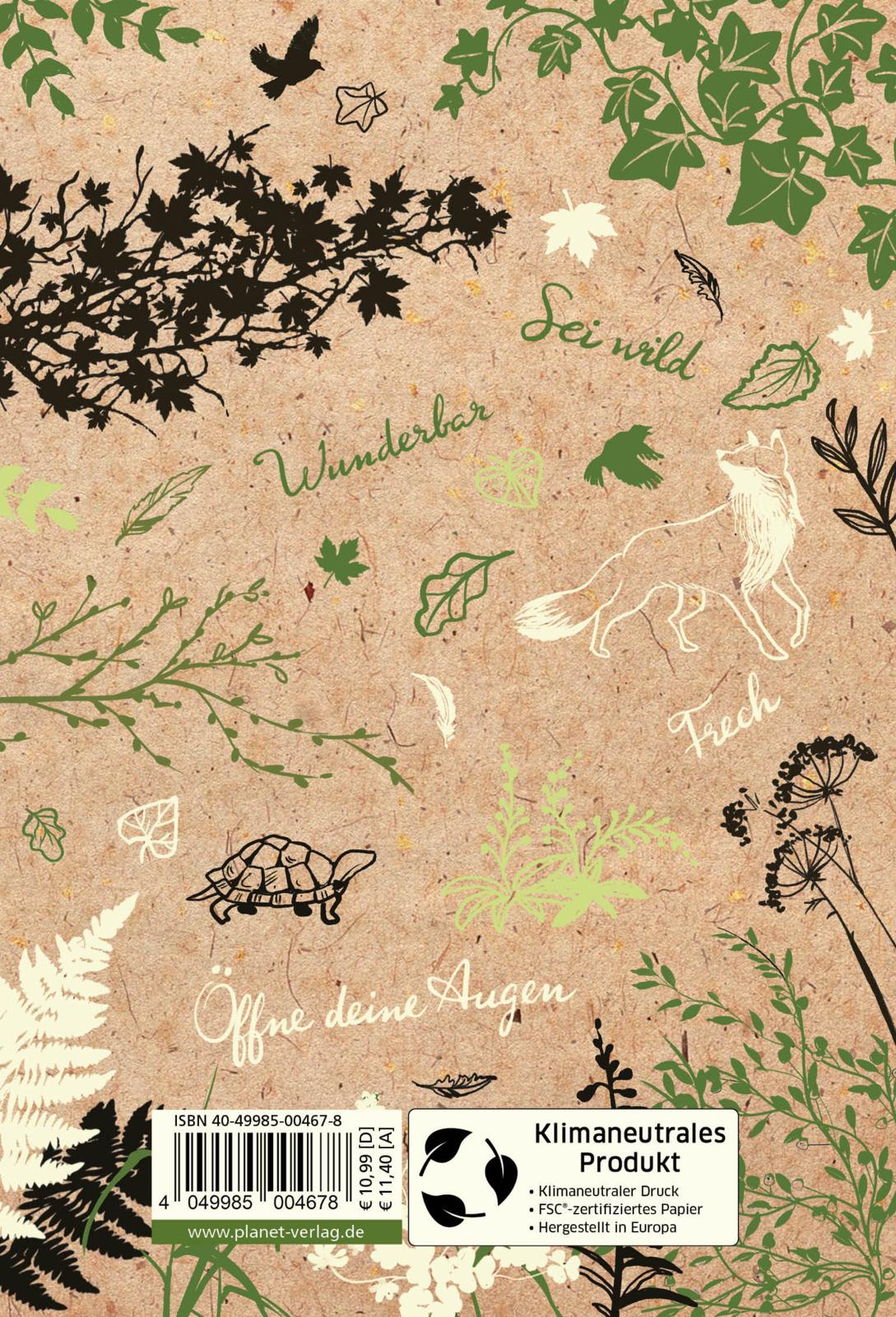 In diesem Notizbuch hast du Platz, all deine Gedanken, Beobachtungen und Träume festzuhalten. Egal, ob du gerade durch den Wald streifst oder zu Hause von einem Spaziergang durch die Natur träumst. Zeichne, schreibe, klebe getrocknete Blätter und andere Fundstücke ein - genau wie Willow! Sei kreativ und wild und lass die Natur bei dir einziehen.