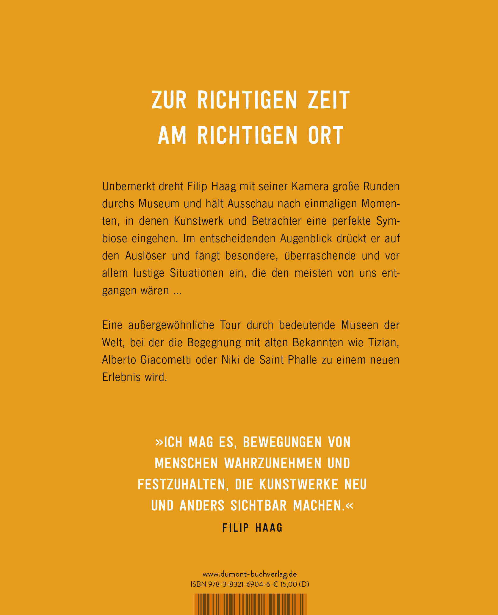 Filip Haag, geboren 1961 in Bern, studierte Kunst- und Literaturgeschichte in Zürich und Berlin und ist seit 1986 freischaffender Künstler. Seine Arbeiten wurden in der Schweiz und in New York ausgestellt und mehrfach ausgezeichnet. Mit einem New-York-Stipendium initiierte er 2016 das vorliegende Projekt, für das er anfangs im Metropolitan Museum of Art und seither auch in vielen bedeutenden europäischen Museen fotografiert. www.filiphaag.ch