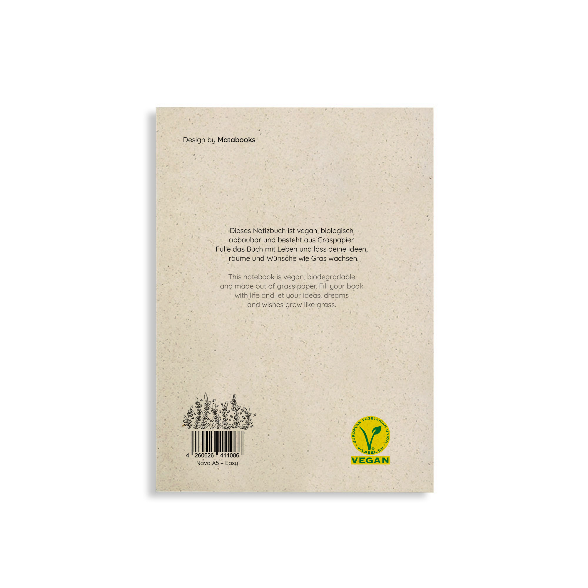 | Schlagworte | A5 • Blanko • bullet journal • Easy M • Graspapier • Made in Germany • Matabooks • nachhaltig • Notizbuch • Tagesbuch • Vegan |