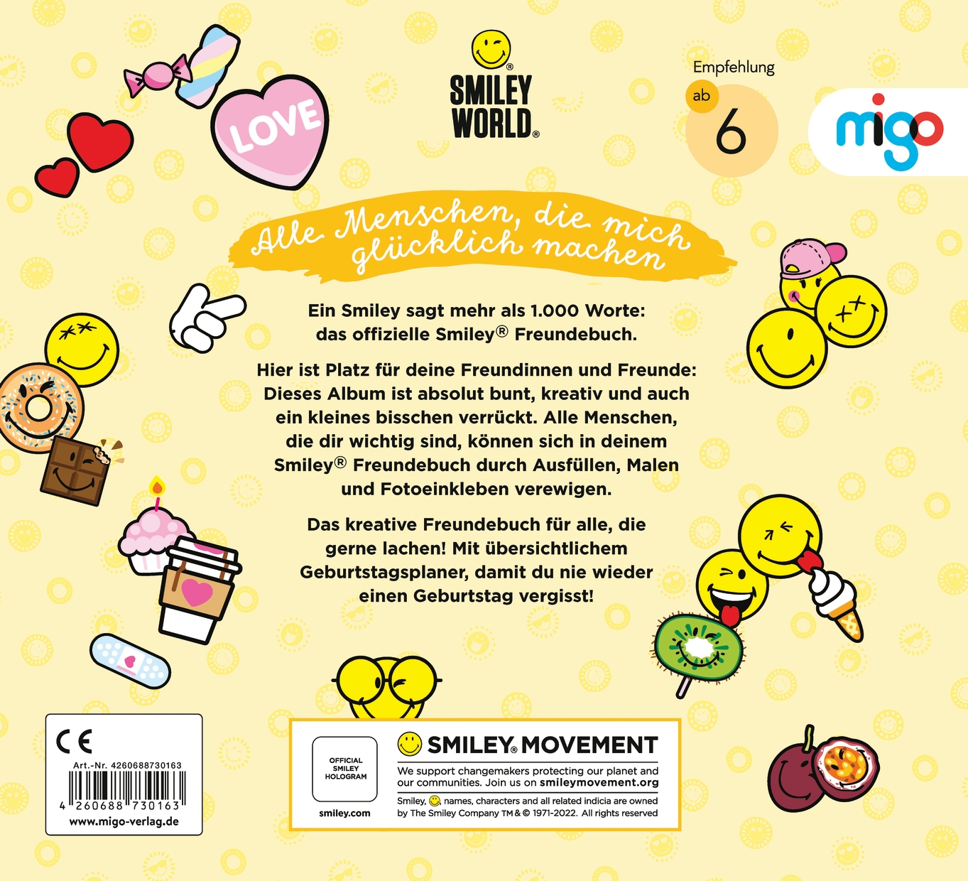Das offizielle Smiley® Freundebuch feiert die Freundschaft: absolut bunt, kreativ und auch ein kleines bisschen verrückt. Wie kaum jemand anderes stehen die Smileys® authentisch für Freude und Glück. Die sympathischen gelben Smileys® sind bei Klein und Groß beliebt und öffnen mit ihrer offenen Art die Herzen. Es ist Zeit zum Lächeln! Denn durch nichts lässt sich Freundschaft besser zeigen, als durch ein herzliches Lächeln. Das Freundebuch mit den Smileys® ist die perfekte Gelegenheit, um alle seine liebsten Menschen in einem Buch zu versammeln. Auf jeder Doppelseite kann sich ein Freund oder eine Freundin mit ihren ganz individuellen Angaben und Wünschen verewigen. Was macht ihn/sie besonders glücklich? Was ist an der gemeinsamen Freundschaft toll? Und was möchte der Freund/die Freundin mal werden, wenn er/sie groß ist? Das kreative Freundebuch für alle, die gerne lachen!