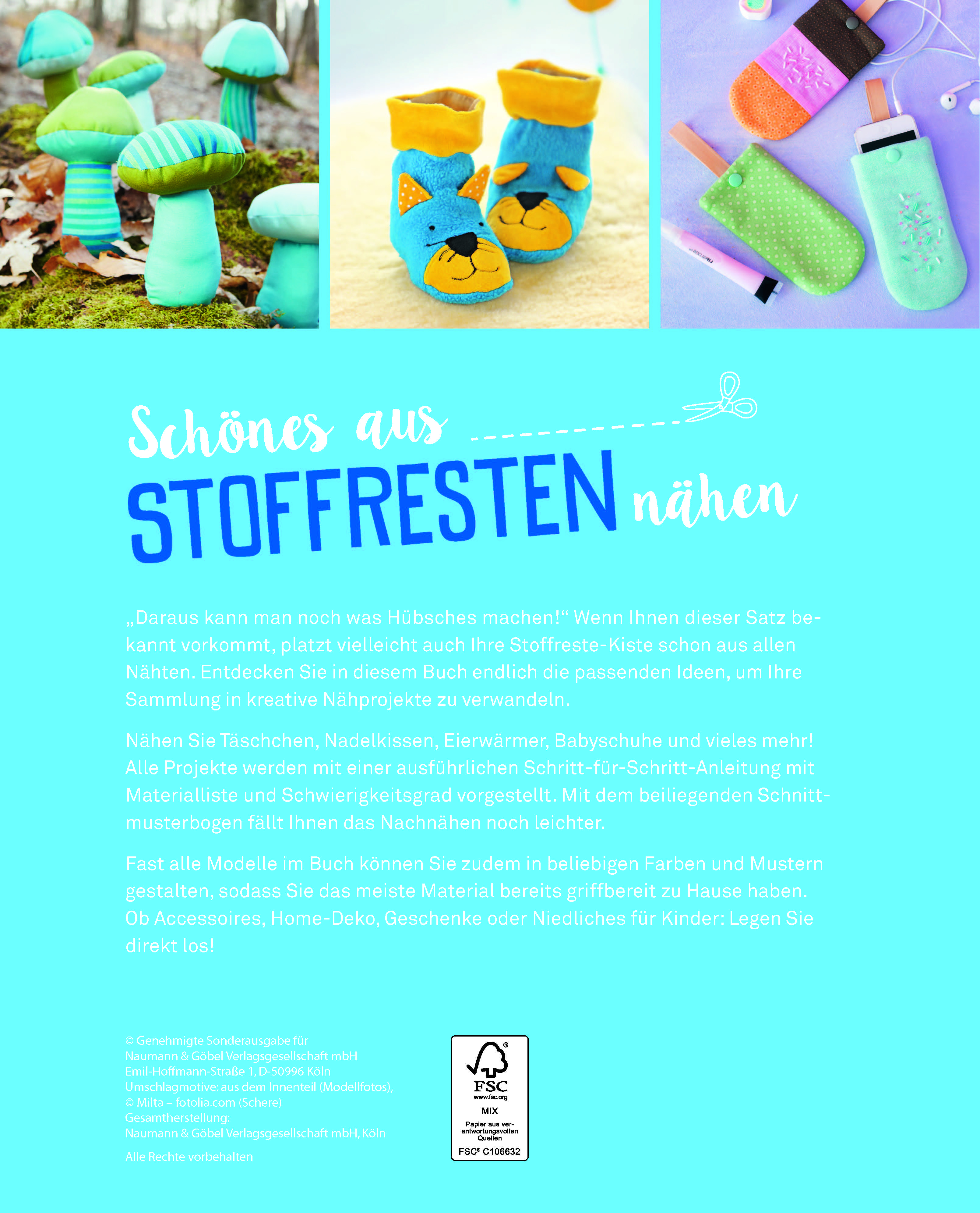 Platzt Ihr Stoffrestekorb aus allen Nähten? Kein Problem, denn daraus kann man noch was Hübsches machen! Entdecken Sie in diesem Buch endlich die passenden Ideen, um Ihre kunterbunte Sammlung in kreative Nähprojekte zu verwandeln. Nähen Sie Täschchen, Nadelkissen, Eierwärmer, Babyschuhe und vieles mehr!