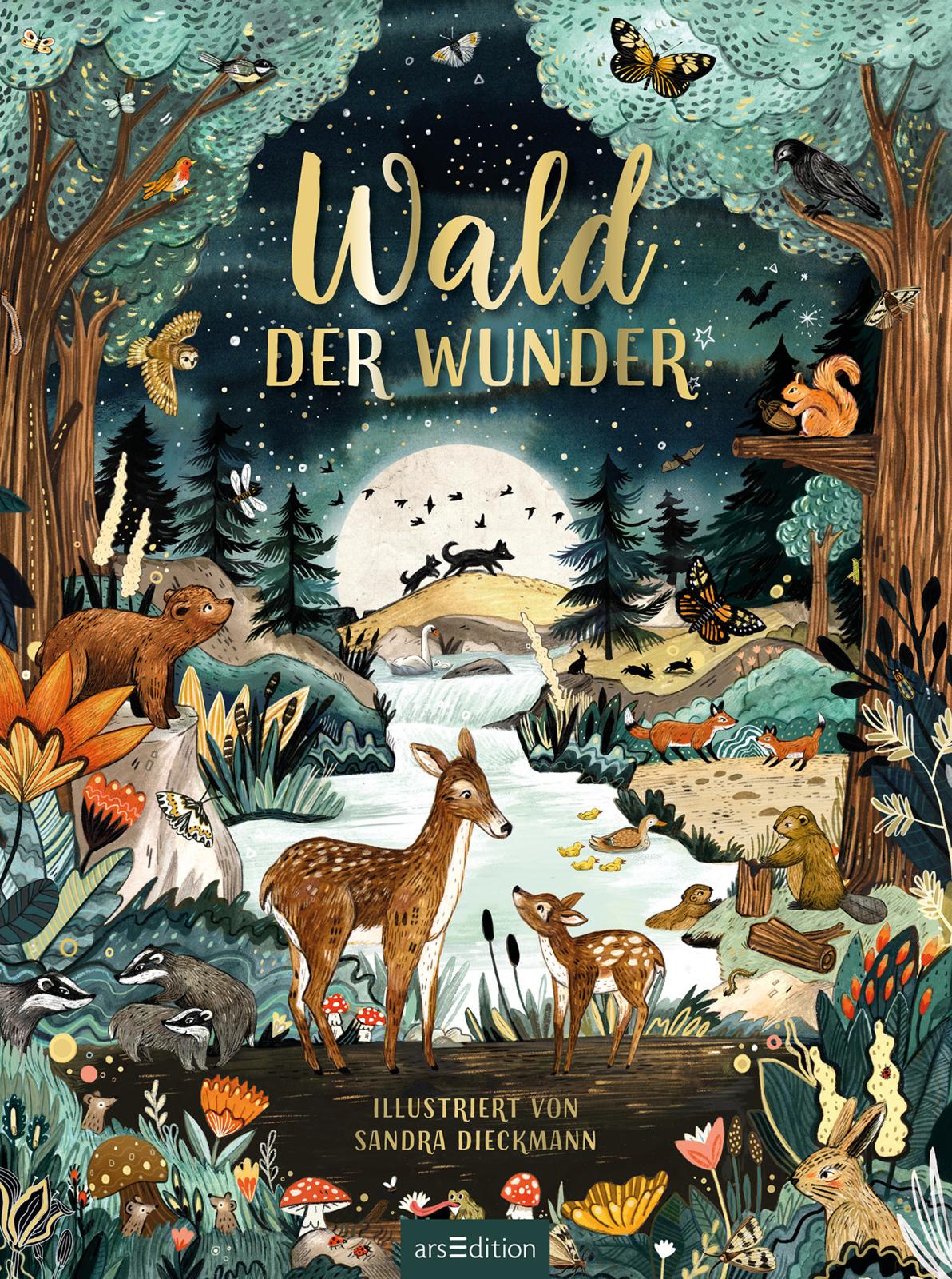 Die Morgensonne kitzelt das junge Hirschkalb und seine Mutter wach. Sie werden heute das saftigste Gras des Waldes suchen. Im Laufe der Seiten entdeckst du auf deinem Wald-Spaziergang auch die Füchse und Schmetterlinge, Bären und Bienen, Eichhörnchen und Vögel, Wölfe, Dachse und viele mehr ... Doch langsam geht die Sonne unter, der Mond zeigt sich über den Bäumen. Auch wenn viele Tiere noch draußen sind, ist es für uns Zeit, Gute Nacht zu sagen!