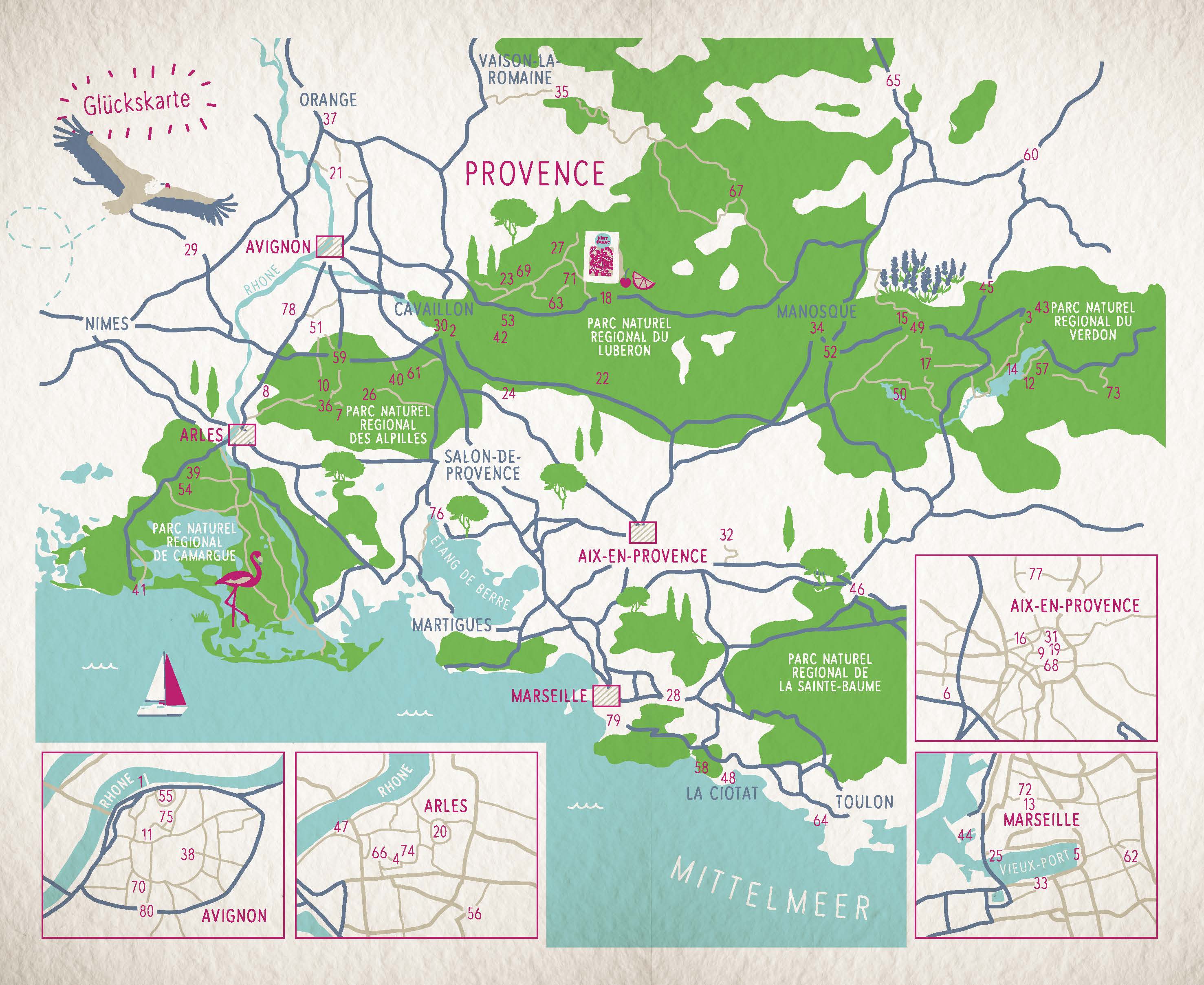 Lauschige Städte und trubelige Häfen, gewaltige römische Bauten, weite Lavendelfelder, knorrige Olivenbäume, idyllische Felsendörfer, tiefe Schluchten und smaragdgrüne Seen: Zauberhafte Orte finden sich in der Provence en masse - das wussten schon die berühmten Maler, die sich vom gleißenden Licht inspirieren ließen. Wenn der Himmel azurblau strahlt, die warme Luft sanft vibriert und der Duft von Kräutern und Pinien in der Nase kitzelt, hat man nur noch einen Wunsch: für immer zu bleiben.