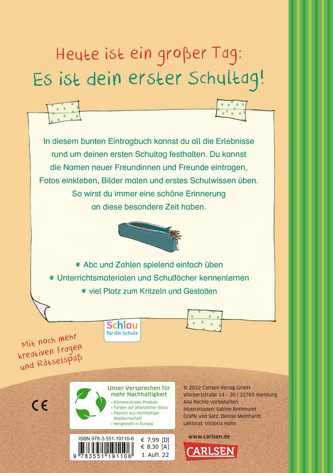 In diesem bunten Eintragbuch können Mädchen und Jungs Fotos einkleben, Bilder malen und die ersten Schulerlebnisse festhalten. Sie können Unterrichtsmaterialien und Schulfächer kennenlernen, die Namen neuer Freundinnen und Freunde eintragen und das Schreiben ausprobieren. Kindgerechte Fragen und die fröhliche Gestaltung bieten viel Platz zum Kritzeln und Malen. So wird jedes Beschäftigungsbuch zu einem ganz persönlichen Erinnerungsbuch an eine ganz besondere Zeit.