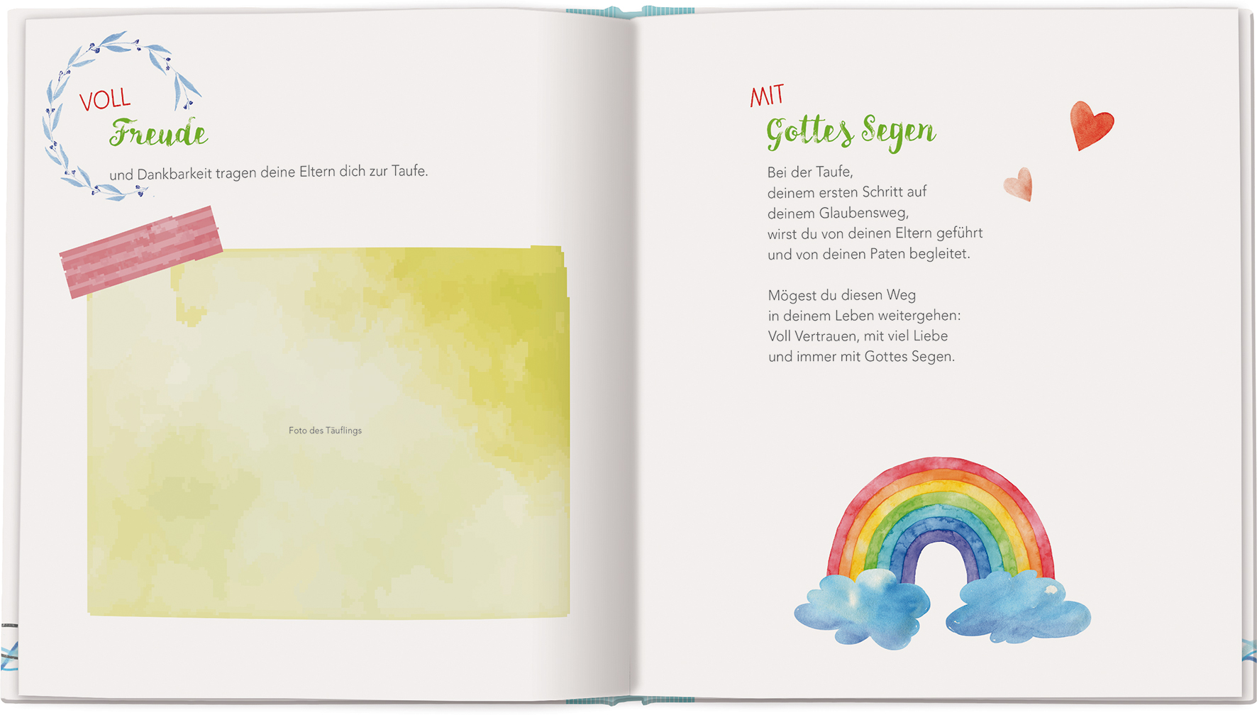 Erinnerungsalbum zur TaufeMit diesem farbenfroh gestalteten Album bleibt der Tag der Taufe für immer in Erinnerung! Es bietet viel Platz für die schönsten Fotos vom Taufgottesdienst und der anschließenden Feier mit Familie, Paten und Freunden. Darüber hinaus gibt es zahlreiche Möglichkeiten für persönliche Eintragungen, z.B. liebevolle Wünsche der Paten und der weiteren Taufgäste. Ergänzt wird das Album durch berührende Texte, Lieder, Bibelverse und Gebete. Das Album ist auf dem Cover mit silberner Folie veredelt und durchgängig wunderschön illustriert.Eine zauberhafte Geschenkidee zur Taufe für Mädchen und Jungen.- Viel Platz für persönliche Eintragungen und die besten Fotos- Mit kurzen Zitaten, Gebeten und Bibelversen- Silberfolienveredelung auf dem Cover