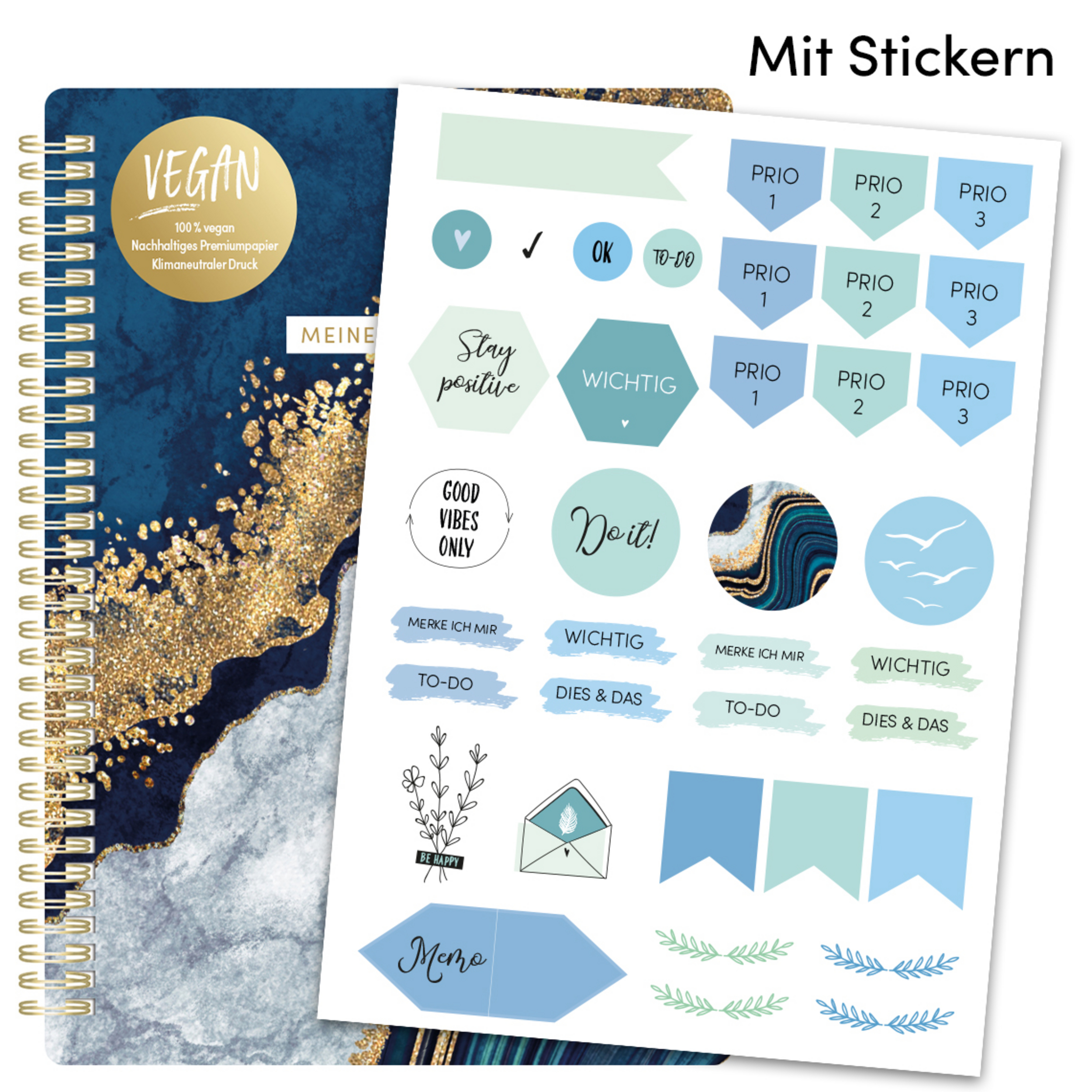 Plane deinen Tag mit Liebe! Entdecke weitere, inspirierende Lifestyle-Produkte in diesem Trend-Design: TO-DO-Liste, TO-DO-Block, Wochenplaner, Notizblock, Sticky Notes, Reisetagebuch und Rezeptbuch. Kollektion Marble blue Die Kollektion Marble blue verzaubert durch fließende Blau- und Goldtöne mit Marmor-Effekten. Edles Design für Home-Office oder Büro. Notizblock DIN A5 (14,8 x 21 cm) liniert/dotted 100 g umweltfreundliches FSC Papier 100 % vegan Klimaneutraler Druck 80 Blatt Mit TO-DO Liste und Stickern Goldfarbene Spiralbindung Stylischer Notitzblock mit Goldfolienveredelung: für Ziele, Skizzen, Pläne und Gedanken, als Agenda oder für Bullet Journaling - immer mit dabei und zur Stelle, wenn sich ein Geistesblitz ankündigt! Die TO-DO Liste und die passenden Sticker machen diesen Block zu einem unentbehrlichen Alltagshelfer. Der SchreibLiebe-Notizblock ist eine wundervolle Geschenkidee für einen lieben Menschen oder für sich selbst.