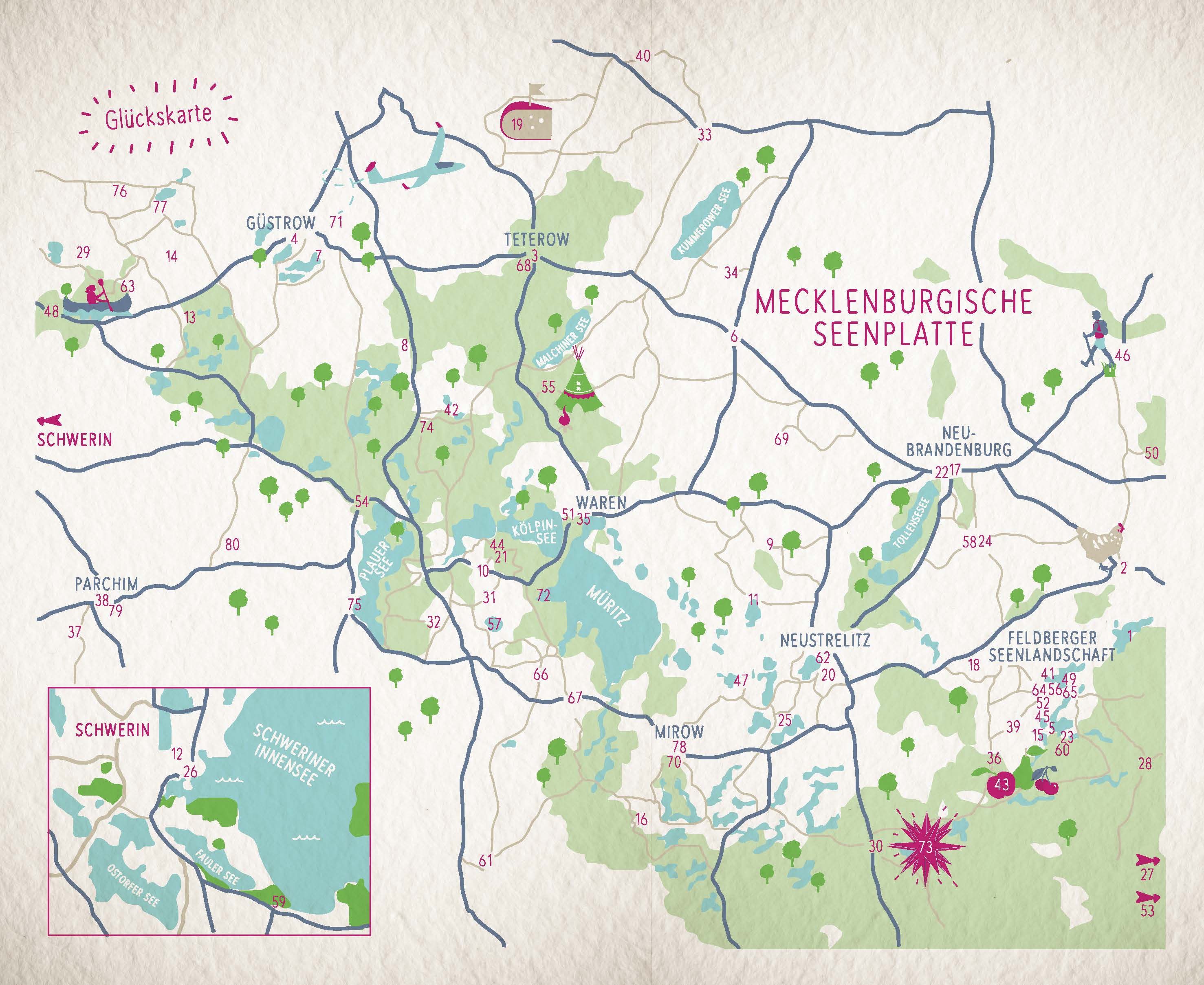 Lust auf über 1000 Seen? Nichts leichter als das an der Mecklenburgischen Seenplatte. Ob schwimmen, tauchen, paddeln, ob Füße oder Seele baumeln lassen - hier ist für jeden das passende Gewässer dabei! Traumhafte Radwege, schnucklige Gartencafés, abenteuerliche Flüsse und märchenhafte Wälder kuscheln sich in dieses idyllische Fleckchen Erde. Und wer doch mal Lust auf ein bisschen Trubel hat, bummelt durch hübsche Städte wie Schwerin oder Neubrandenburg.