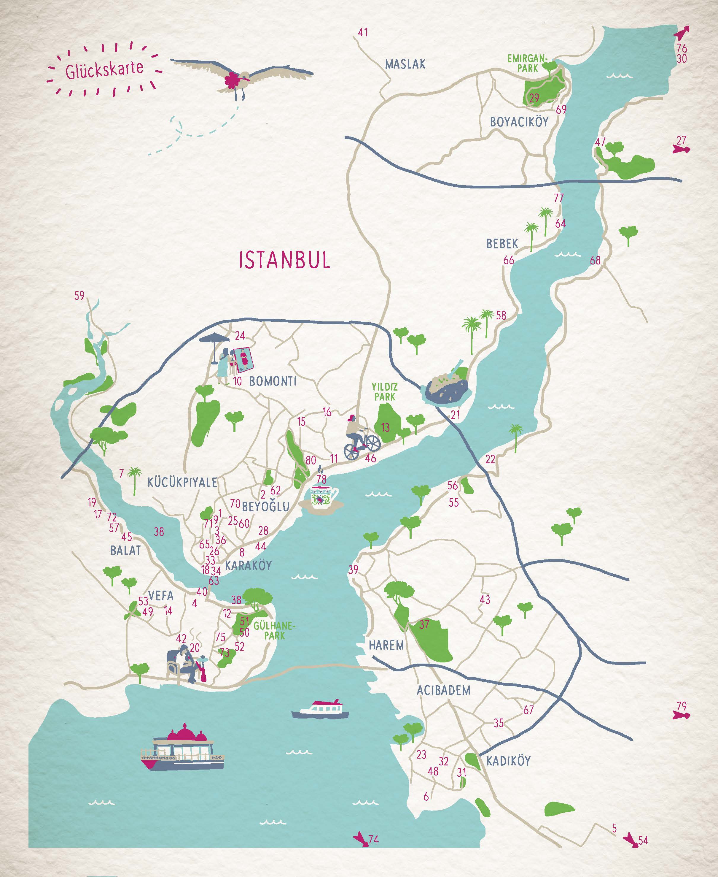 Aufregende Gerüche, neue Geschmackserlebnisse, faszinierende Klänge und intensive Farben: Istanbul ist eine Stadt, die man mit allen Sinnen erlebt. Wer "schwarzes Gold" in einem deutsch-türkischen Kaffeehaus genießen, sich an einem Wasserfall entspannen oder nach außergewöhnlichen Antiquitäten stöbern möchte, ist hier genau richtig. Von wunderbaren Highlights bis hin zu verborgenen Oasen jenseits der touristischen Pfade präsentiert Özge Kabukçu 80 Orte, die vor Glück nur so glühen!