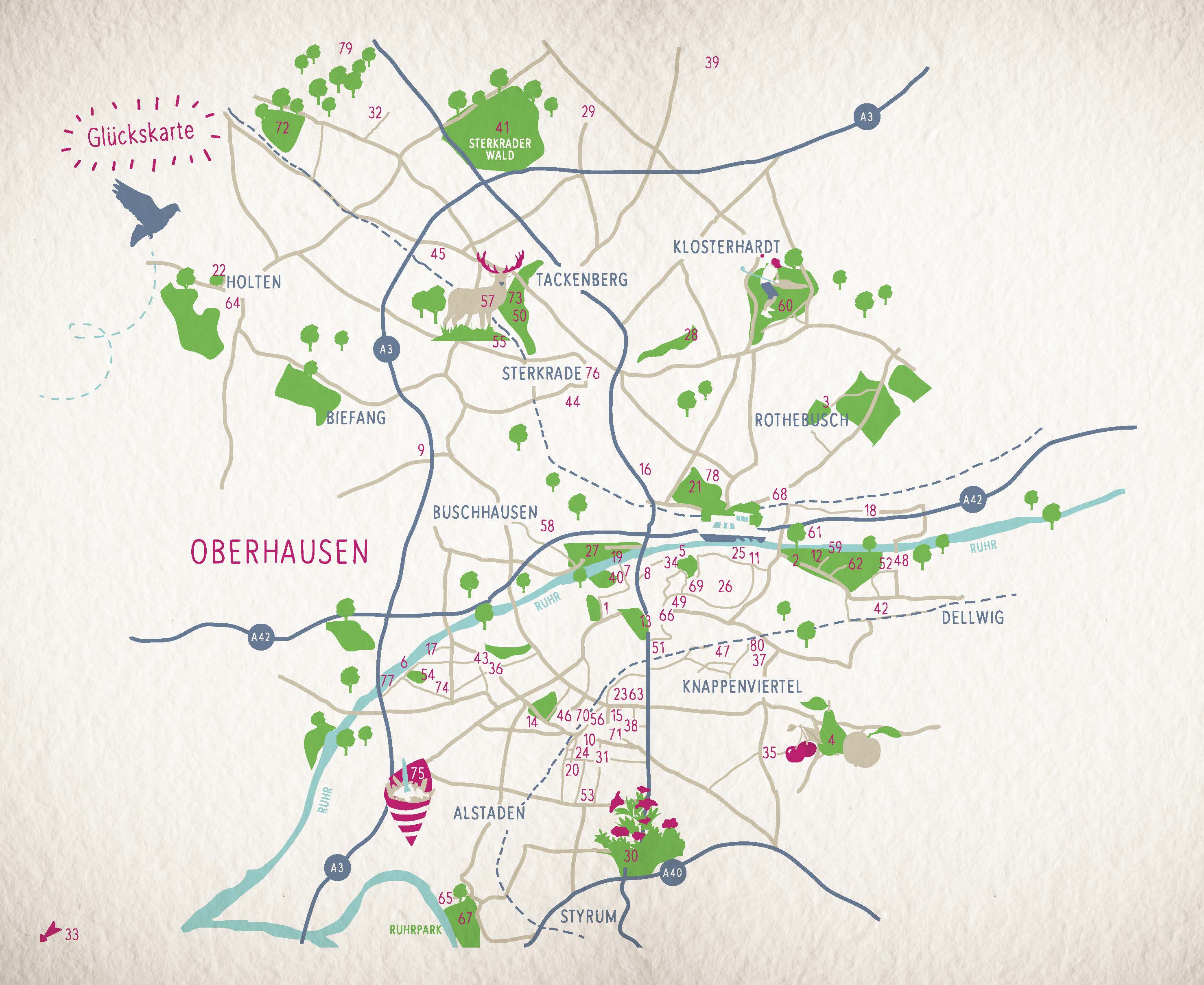 Oberhausen gehört einfach zu den tollsten Städten im Ruhrgebiet. Das liegt an dem prachtvollen Schloss mit englischem Garten, dem Gasometer, den vielen Möglichkeiten, wunderbar einzukaufen, und natürlich am bedeutenden Rhein-Herne-Kanal. Aber vor allem sind es die grundehrlichen Menschen mit ihren großen Herzen, die Oberhausen so besonders machen. Hier braucht niemand eine rosa Brille, um sich in die Stadt zu verlieben. Das geschieht ganz von allein.