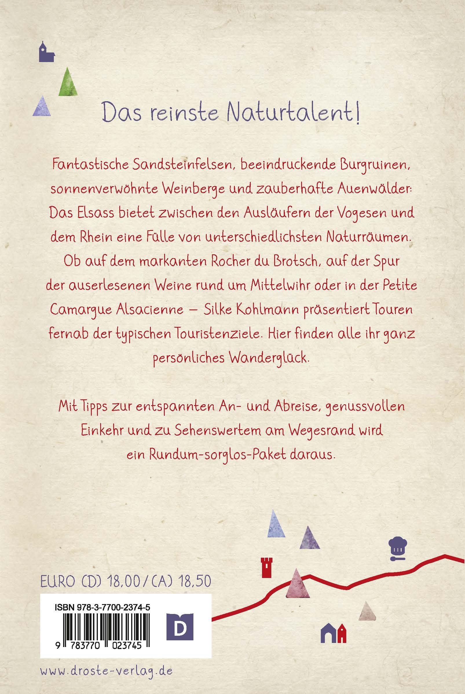 Fantastische Sandsteinfelsen, beeindruckende Burgruinen, sonnenverwöhnte Weinberge und zauberhafte Auenwälder: Das Elsass bietet zwischen den Ausläufern der Vogesen und dem Rhein eine Fülle von unterschiedlichsten Naturräumen. Ob auf dem markanten Rocher du Brotsch, auf der Spur der auserlesenen Weine rund um Mittelwihr oder in der Petite Camargue Alsacienne - Silke Kohlmann präsentiert Touren fernab der typischen Touristenziele. Hier finden alle ihr ganz persönliches Wanderglück.Unsere Wanderbücher bieten echte Wohlfühlwege für jede Stimmung. Mit eindrucksvollen Fotos, berührenden Texten und abwechslungsreichen Touren wird jede Wanderung zum besonderen Erlebnis. Entspannung und Inspiration garantiert - ideal auch als Geschenk!