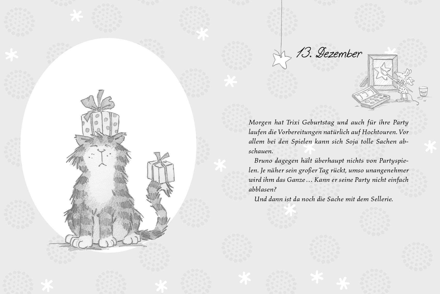 Zur Adventszeit verschlägt es Hund Bruno und Katzendame Soja in diesem Jahr nach Lappland, hoch im Norden von Schweden. Brunos Herrchen muss dort arbeiten und hat einfach alle mitgenommen. Bruno möchte es sich vor dem Kamin gemütlich machen und vom traditionellen schwedischen Weihnachtsschinken träumen, doch Soja schnuppert das nächste Abenteuer schon von Weitem. Schnell schließt sie Freundschaft mit den Tieren des nahe gelegenen Waldes und erfährt, dass bei ihnen einfach keine Weihnachtsstimmung aufkommen will. Schuld ist der Streit zwischen dem Elch Dr. Mo und Herr Bär, dem Grizzly. Für Soja ist klar: Bruno und sie müssen die Freundschaft der beiden retten, damit es wieder heißen kann: Fröhliche Geweihnachten! Ein tierisch gutes Adventskalenderbuch in 24 Kapiteln mit perforierten Seiten zum Auftrennen - das perfekte Wichtelgeschenk für Kinder ab 8 Jahren.Außerdem erschienen: