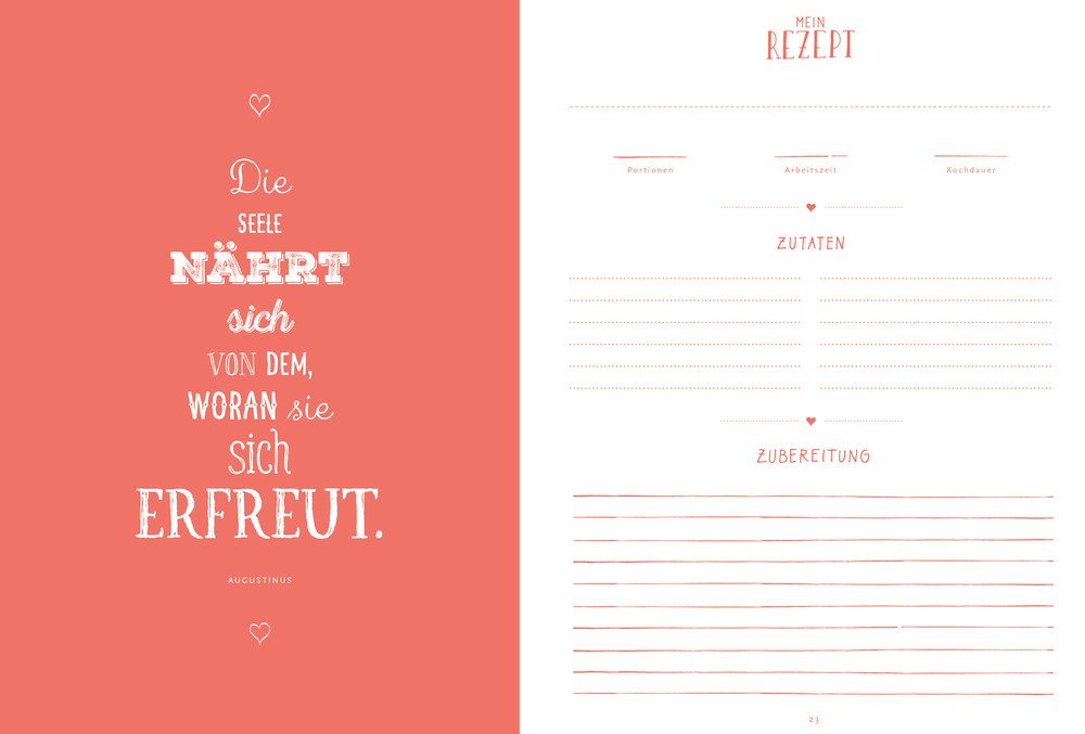 Liebevoll gestaltetes DIY-Rezeptheft mit separater Zutatenliste, Inhaltsverzeichnis zum Selbstgestalten und kulinarischen Zitaten. Ein schönes Geschenk für alle, die gerne kochen und backen!
