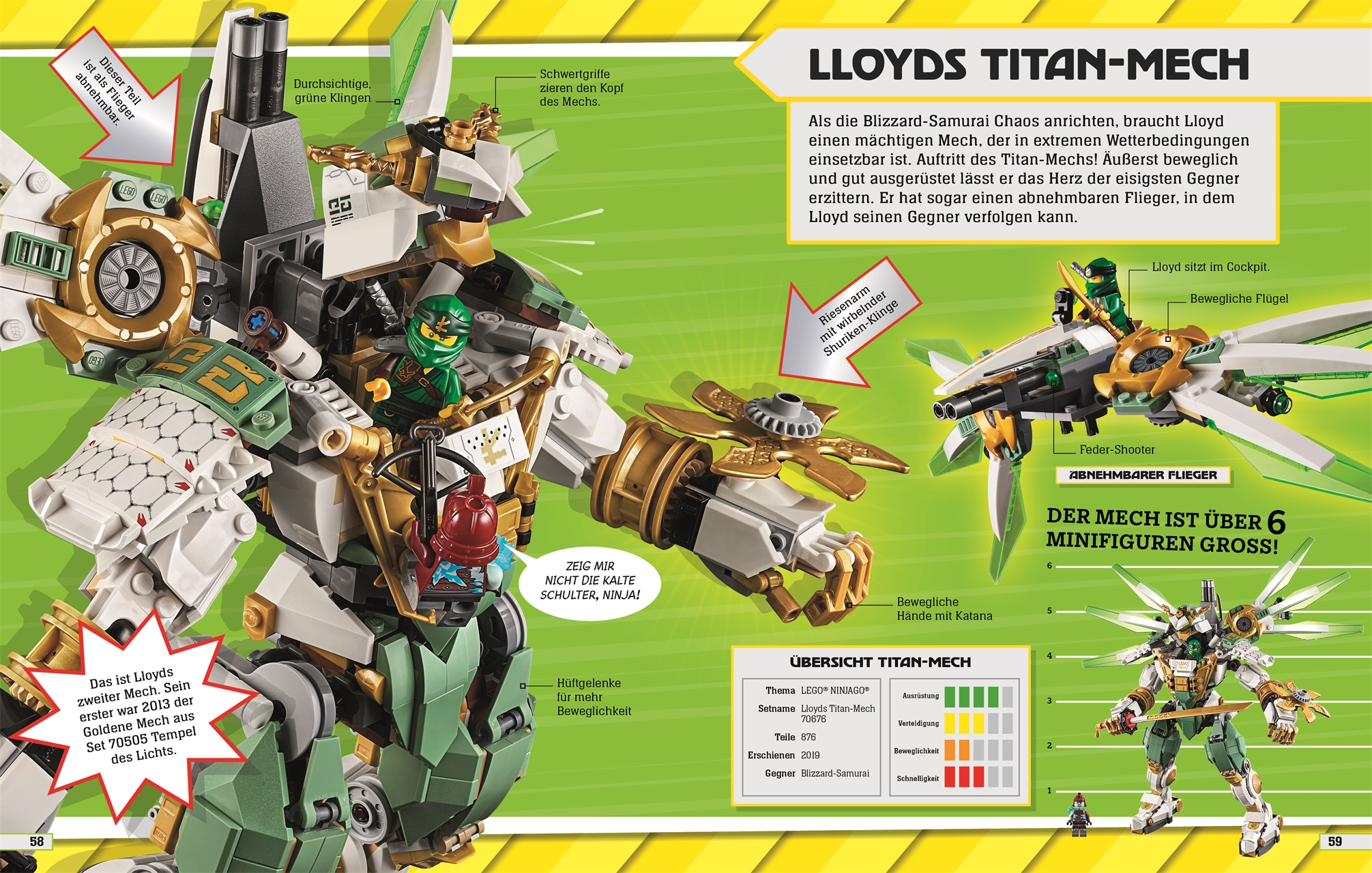 - In sechs Kapiteln durch die Welt der LEGO® NINJAGO® Roboter: Shooter-Roboter, tierische Roboter, Mini Roboter, fantastische Ausrüstung, Roboter-Fahrzeuge und riesige Roboter - hier gibt es einiges zu entdecken!