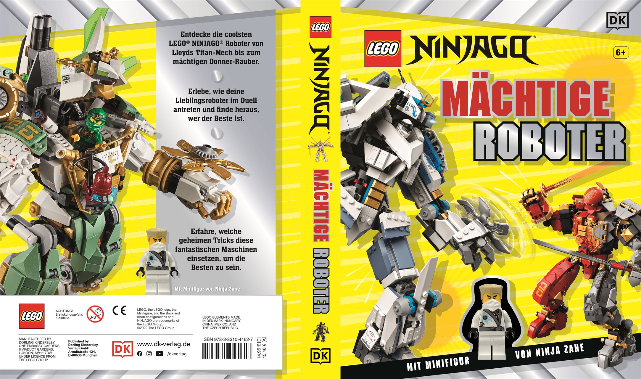 Aufgepasst, NINJAGO Fans - jetzt wird's gigantisch! Dieses Buch stellt die unglaublichen Fähigkeiten der LEGO® NINJAGO® Roboter vor, die die Ninja Lloyd, Cole, Kai und Co. gegen fiese Schurken unterstützen - vom lauten Donner-Räuber bis zum mächtigen Goldenen Mech. Zusammen mit der Minifigur von Ninja Zane lernen die Leser und Leserinnen alles über die gewaltigen Maschinen, ihre besonderen Tricks und wie man sie noch besser ausrüsten kann. Mit beeindruckenden Fotos, spannenden Roboter-Details und coolen Fakten ist dieses Buch das perfekte Geschenk für jeden LEGO® NINJAGO® Fan.