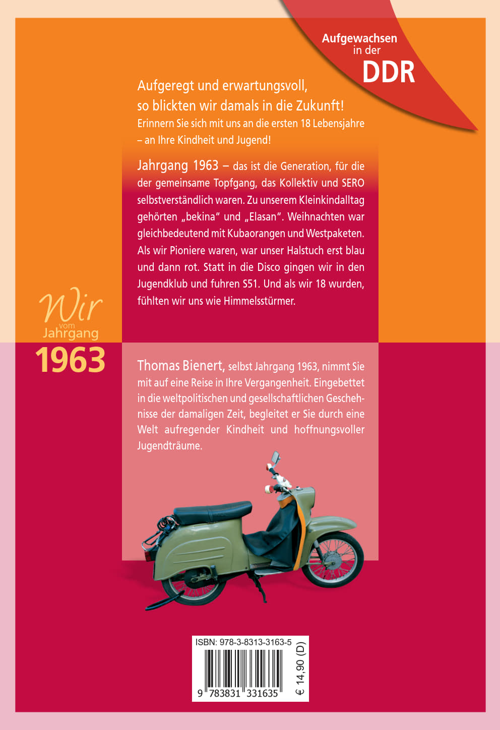 Aufgeregt und erwartungsvoll, so blickten wir damals in die Zukunft! Erinnern Sie sich mit uns an die ersten 18 Lebensjahre - an Ihre Kindheit und Jugend!Jahrgang 1963 - das ist die Generation, für die der gemeinsame Topfgang, das Kollektiv und SERO selbstverständlich waren. Zu unserem Kleinkindalltag gehörten "bekina" und "Elasan". Weihnachten war gleichbedeutend mit Kubaorangen und Westpakten. Als wir Pioniere waren, war unser Halstuch erst blau und dann rot. Statt in die Disco gingen wir in den Jugendklub und fuhren S51. Und als wir 18 wurden, fühlten wir uns wie Himmelsstürmer.