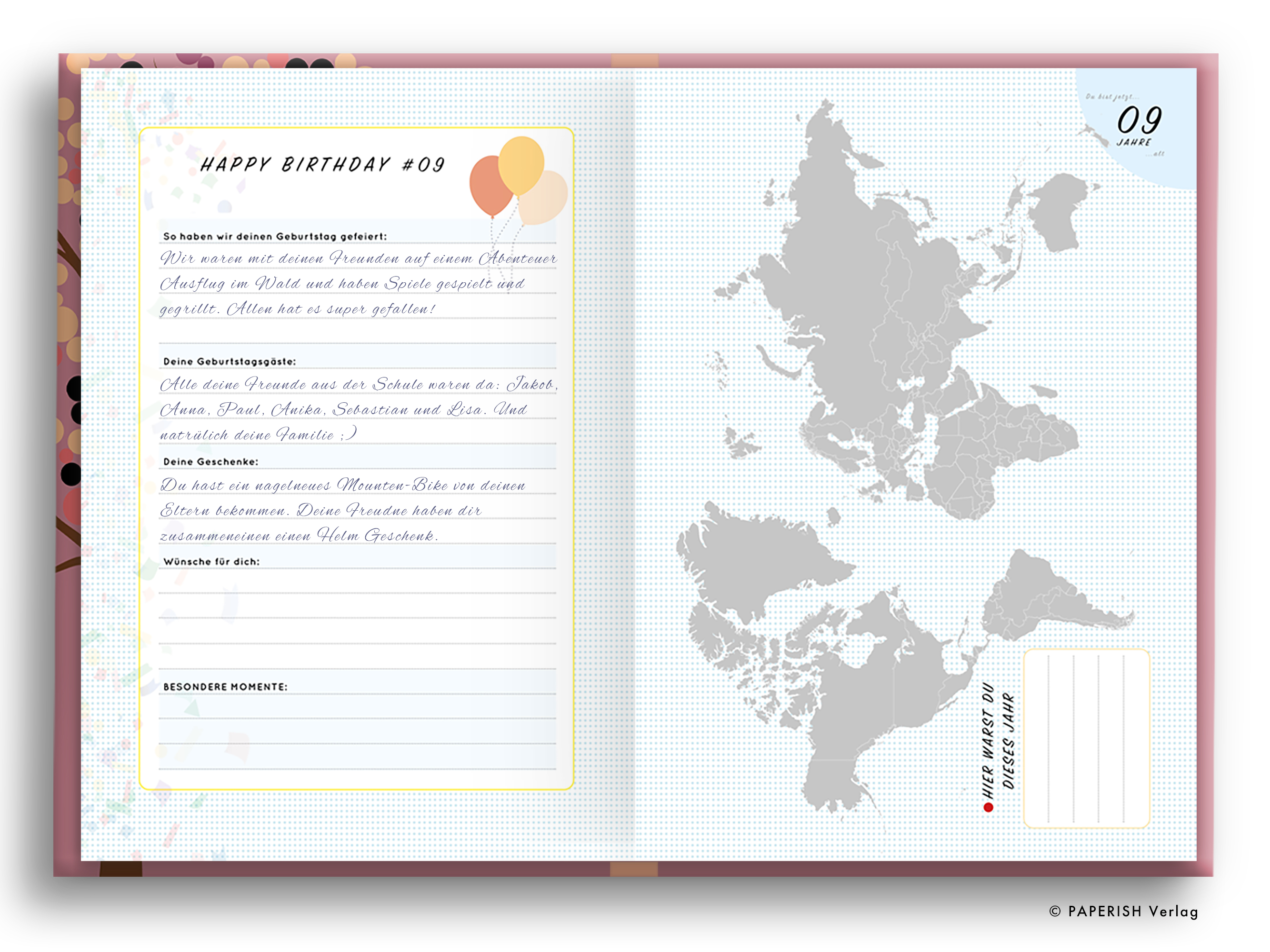 - Hochwertige und liebevolle Gestaltung mit viel Platz für Bilder Texte und Erinnerungen