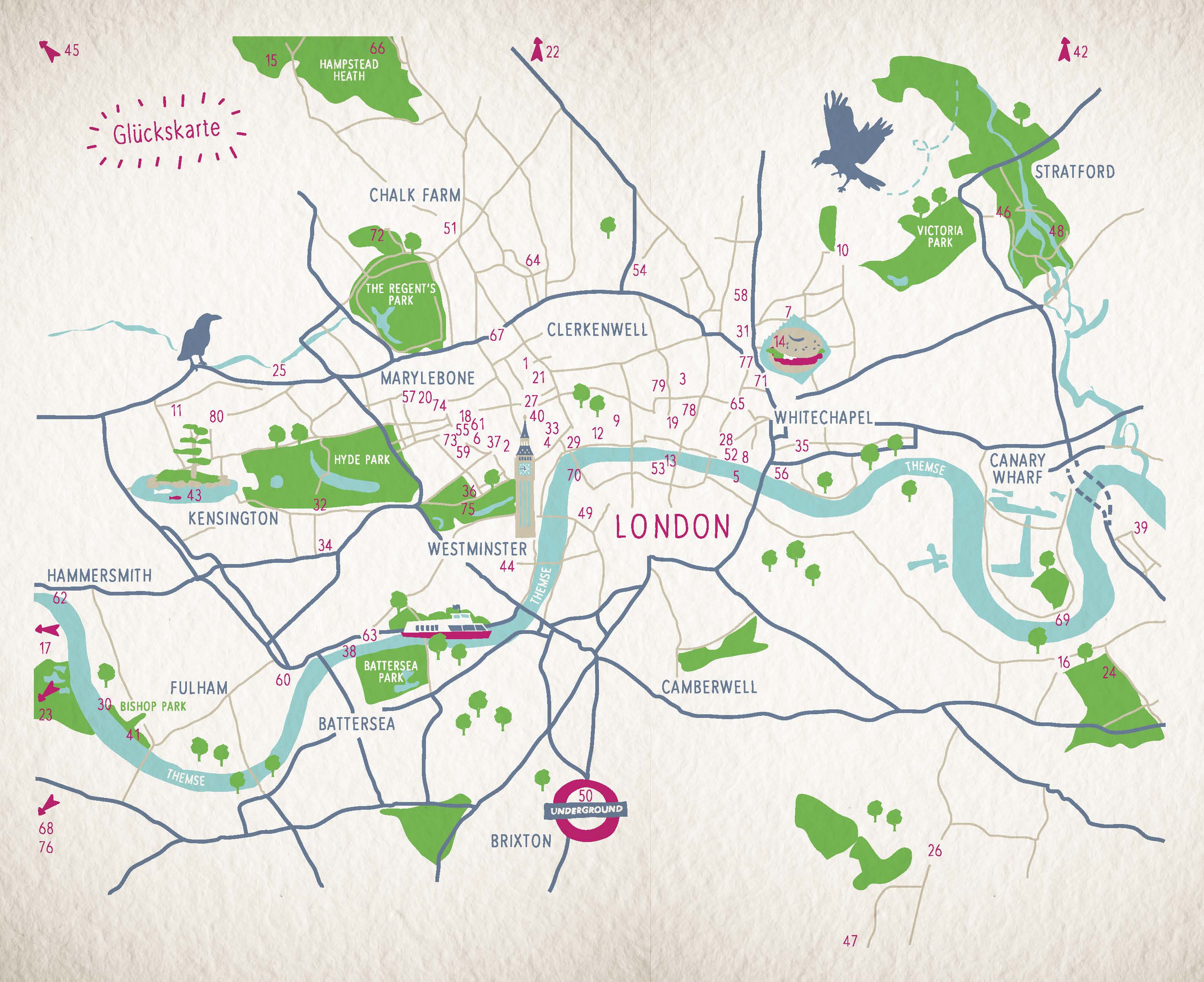 Schatzsucher finden das Glück bei Ebbe am Themseufer, Foodies schwelgen beim Afternoon Tea auf Wolke Sieben und müde Großstadtnomaden lassen sich im Doppelstockbus durch die Stadt zu chauffieren - oben natürlich. London hält zahllose Glücksorte bereit. Manche sind urban, andere sind versteckt und still, viele "very british". 80 solcher "places to be" hat Katy Schlegel zwischen East End und West End aufgespürt. London´s calling: ein Ruf, dem Glücksuchende unbedingt folgen sollten!