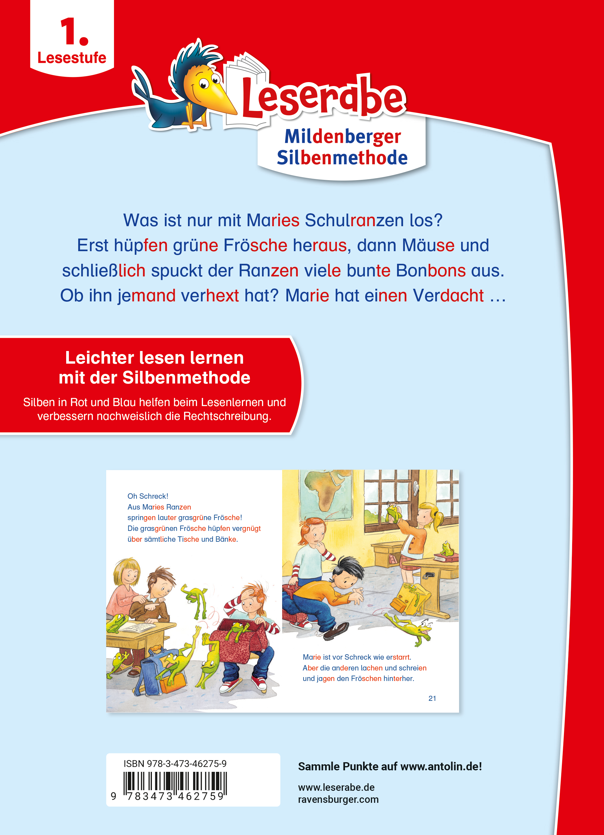 Was ist nur mit Maries Schulranzen los? Erst hüpfen grüne Frösche heraus, dann Mäuse und schließlich spuckt der Ranzen viele bunte Bonbons aus. Ob ihn jemand verhext hat? Marie hat einen Verdacht ...