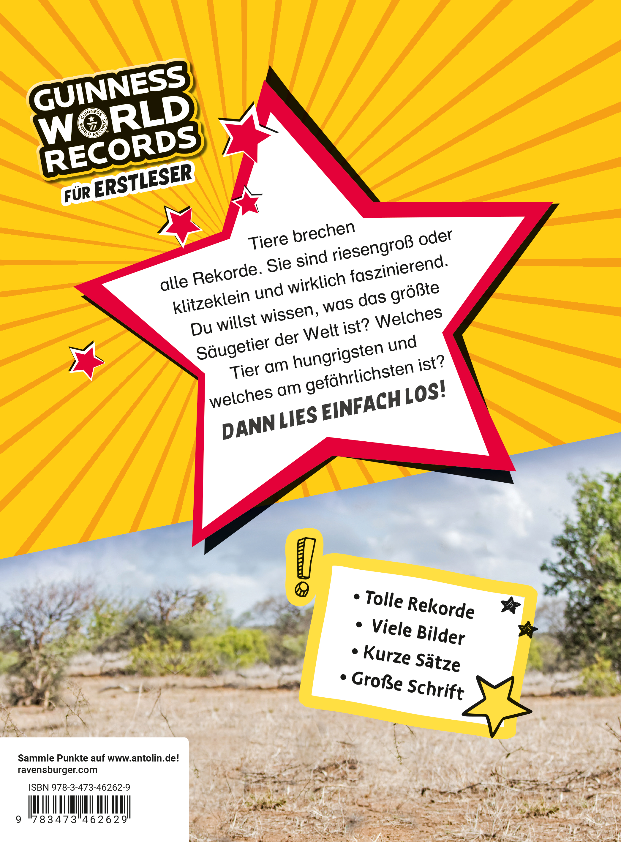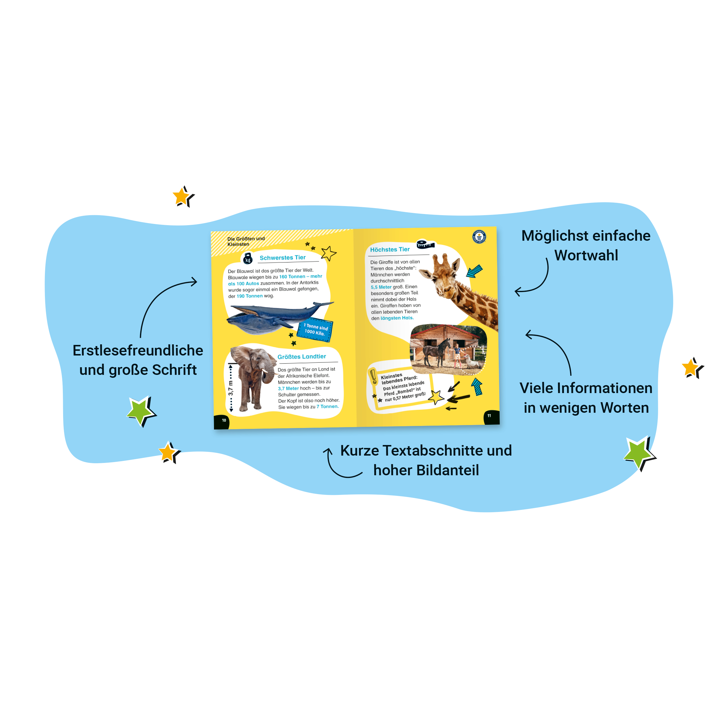Tiere brechen alle Rekorde! Was ist das größte Säugetier, die schnellste Spinne und welches Insekt ist eigentlich am giftigsten? All diese faszinierenden Rekorde können Kinder ab 7 Jahren jetzt auch schon selbst lesen. Kurze Sätze, einfache Sprache, große Schrift und viele Bilder machen es möglich.