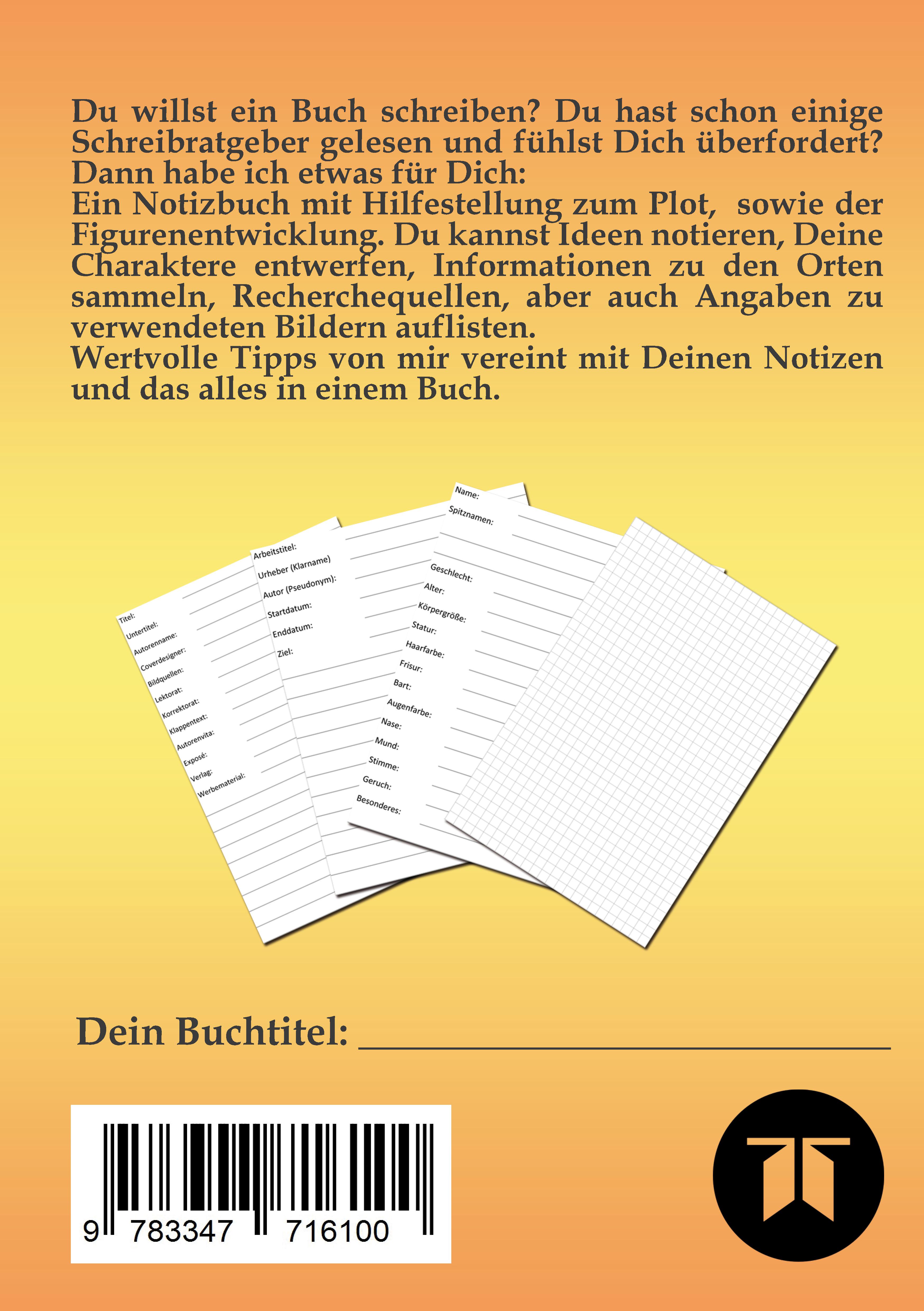 Du willst ein Buch schreiben? Du hast schon einige Schreibratgeber gelesen und fühlst Dich trotzdem noch überfordert? Dann habe ich etwas für Dich: Ein Notizbuch mit Hilfestellung zum Plot, sowie der Figurenentwicklung. Du kannst Ideen notieren, Deine Charaktere entwerfen, Informationen zu den Orten sammeln, Recherchequellen, aber auch Angaben zu verwendeten Bildern auflisten. Wertvolle Tipps von mir vereint mit Deinen Notizen und das alles in einem Buch.