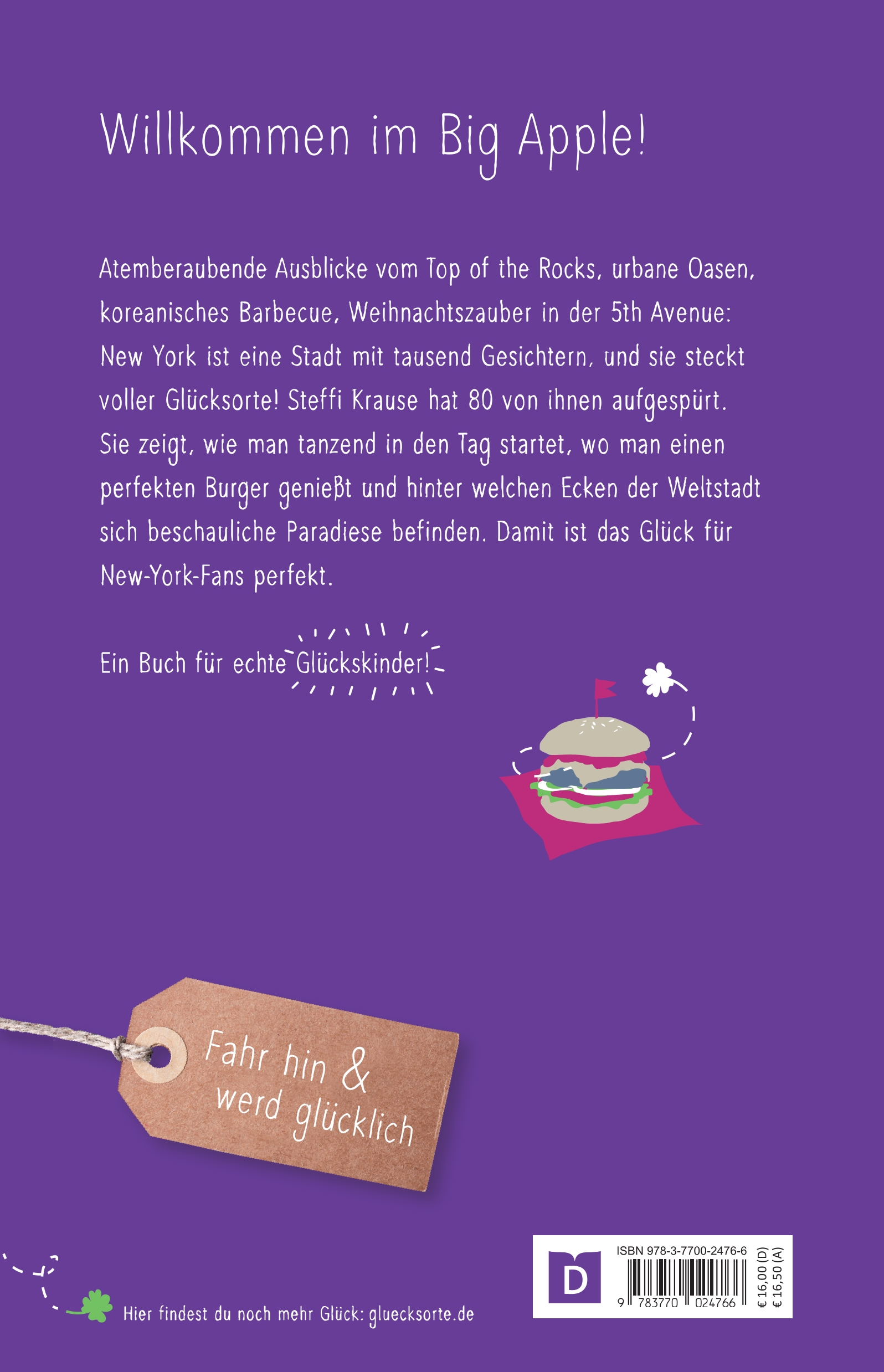 Atemberaubende Ausblicke vom Top of the Rocks, urbane Oasen, koreanisches Barbecue, Weihnachtszauber in der 5th Avenue: New York ist eine Stadt mit tausend Gesichtern, und sie steckt voller Glücksorte! Steffi Krause hat 80 von ihnen aufgespürt. Sie zeigt, wie man tanzend in den Tag startet, wo man einen perfekten Burger genießt und hinter welchen Ecken der Weltstadt sich beschauliche Paradiese befinden. Damit ist das Glück für New-York-Fans perfekt.