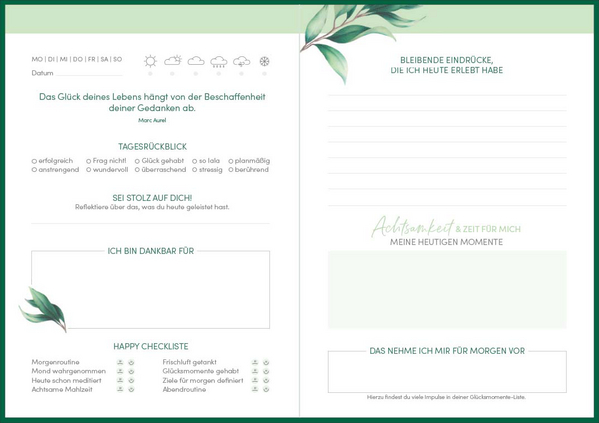 | Schlagworte | Abhaken • Achtsamkeit • Blätter • Büro • daily • Dankbarkeit • Design • Entspannung • Erinnerungen • exotisch • Gedanken • Glück • Ideen Buch • Jungle • Lebensglück • Papeterie • planner • Schule • Tagebuch • tages-highlight |