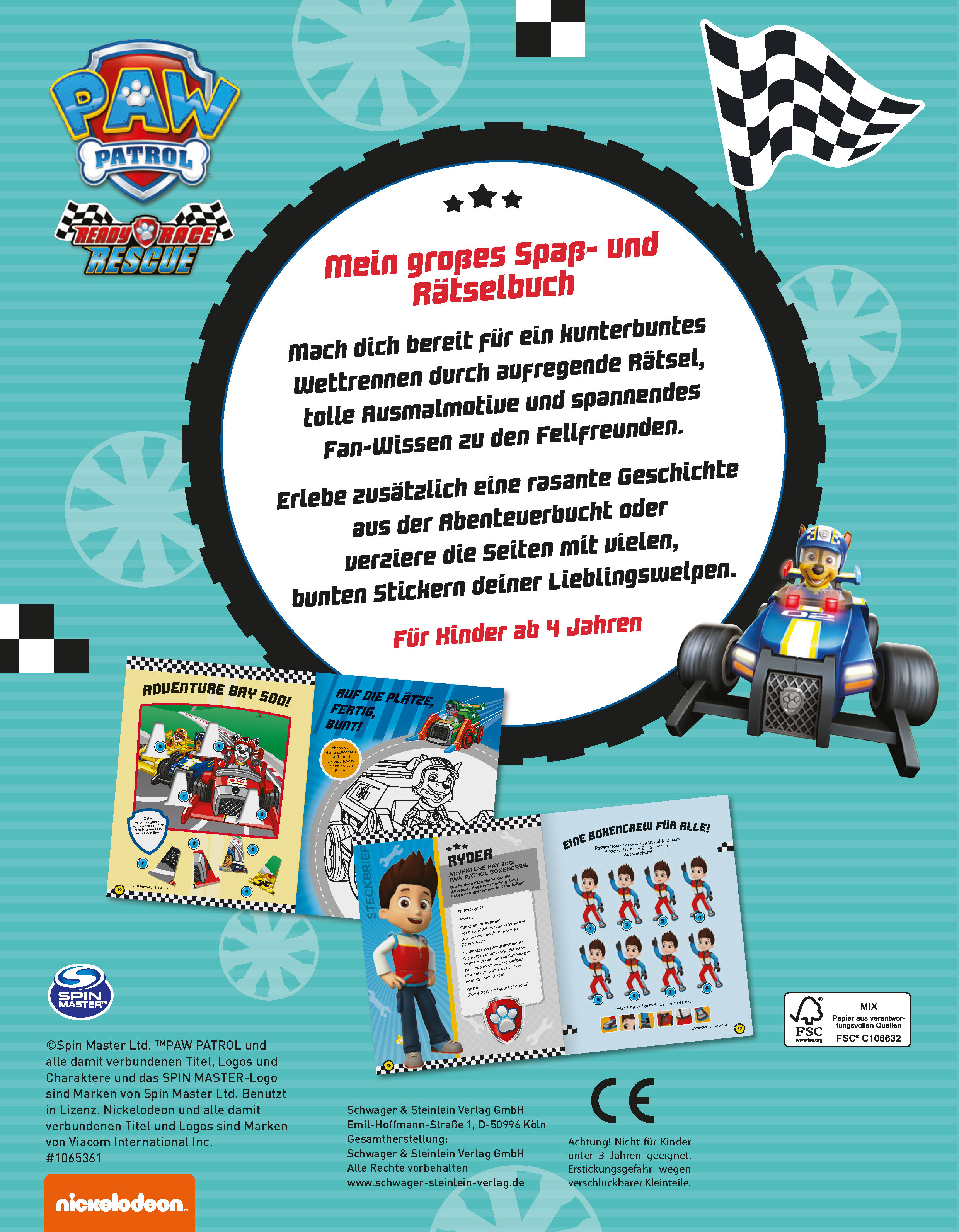 Schnapp dir deine Buntstifte und mach dich bereit für ein kunterbuntes Wettrenen durch aufregende Rätsel, tolle Ausmalmotive und spannenden Fan-Wissen zu den Fellfreunden! Erlebe zusaätzlcih eine rasante Geschichte aus der Abenteuerbucht oder verziere die Seiten mit vielen bunten Stickern deiner Lieblingswelpen Mit Steckbriefen, Quizfragen und lustigen Szenen kannst du außerdem viel Spannendes über die Welt der PAW Patrol erfahren.