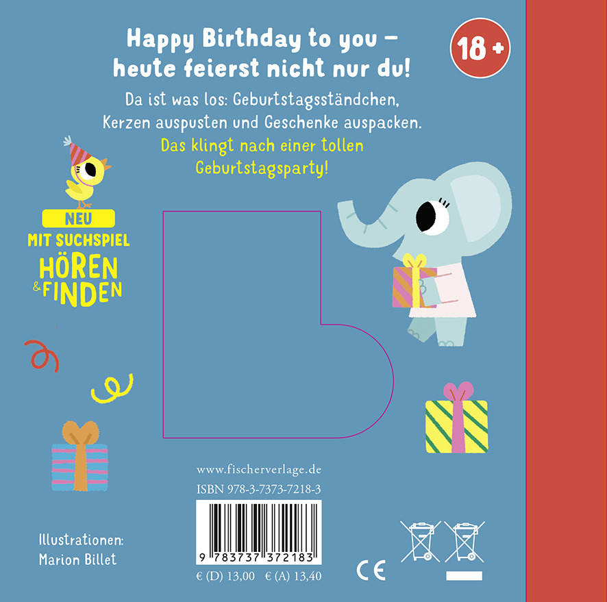Heute ist der schönste Tag im Jahr: Geburtstag! Geburtstagsständchen, Kerzen auspusten, Geschenke auspacken. Die die lustigen Geräusche und die kunterbunten Illustrationen sorgen für großen Partyspaß. Auf der letzten Seite gibt es ein Suchspiel, bei dem zufallsgeneriert ein Geräusch abgespielt wird, das die Kinder dann zuordnen müssen.