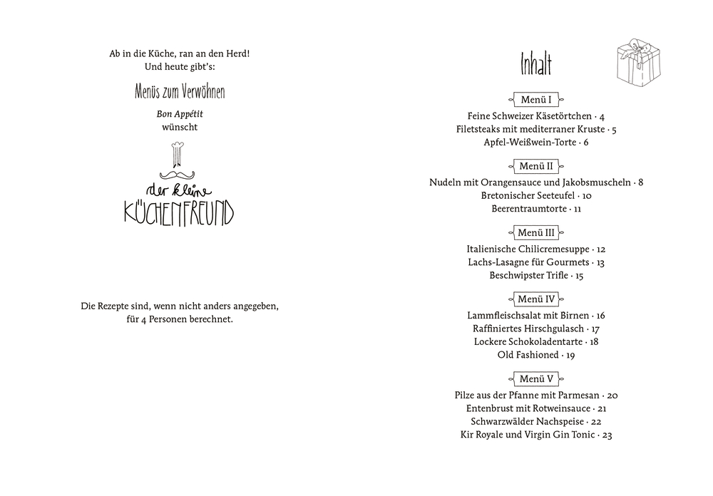 Verwöhnen und verwöhnt werden tut gut - nicht nur am Geburtstag. Zum Beispiel mit leckeren Menüs in drei Gängen, alle vom kleinen Küchenfreund mit viel Liebe komponiert. Genuss garantiert!