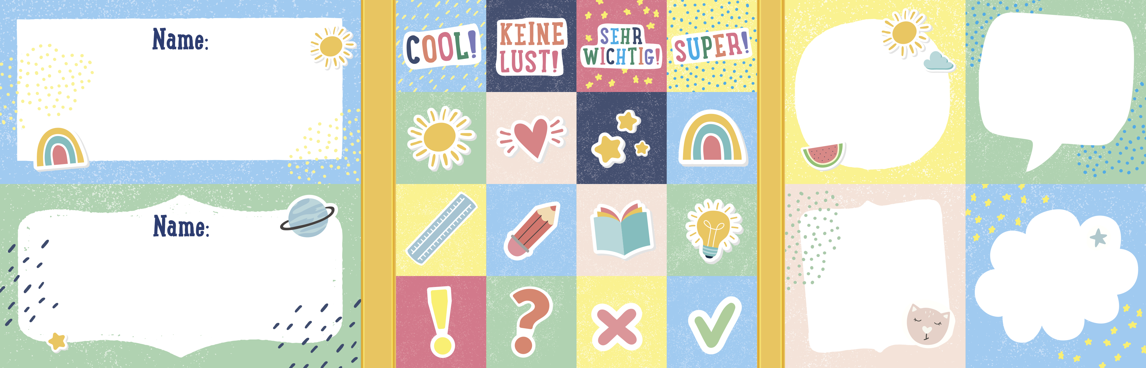 Damit Schule noch mehr Spaß macht: Das Sticker-Buch mit 220 bunten Aufklebern bringt Farbe in den Schulalltag. Die Sticker und Etiketten haften auf Heften, Blöcken und Ordnern, dem Malkasten, der Dose fürs Pausenbrot, dem Taschenrechner und was sonst noch in den Schulranzen gehört. So können Schulsachen ganz einfach beschriftet werden und bekommen eine individuelle Note. Als kleines Geschenk versüßt das coole Sticker-Buch den ersten Schultag oder den Schulanfang.