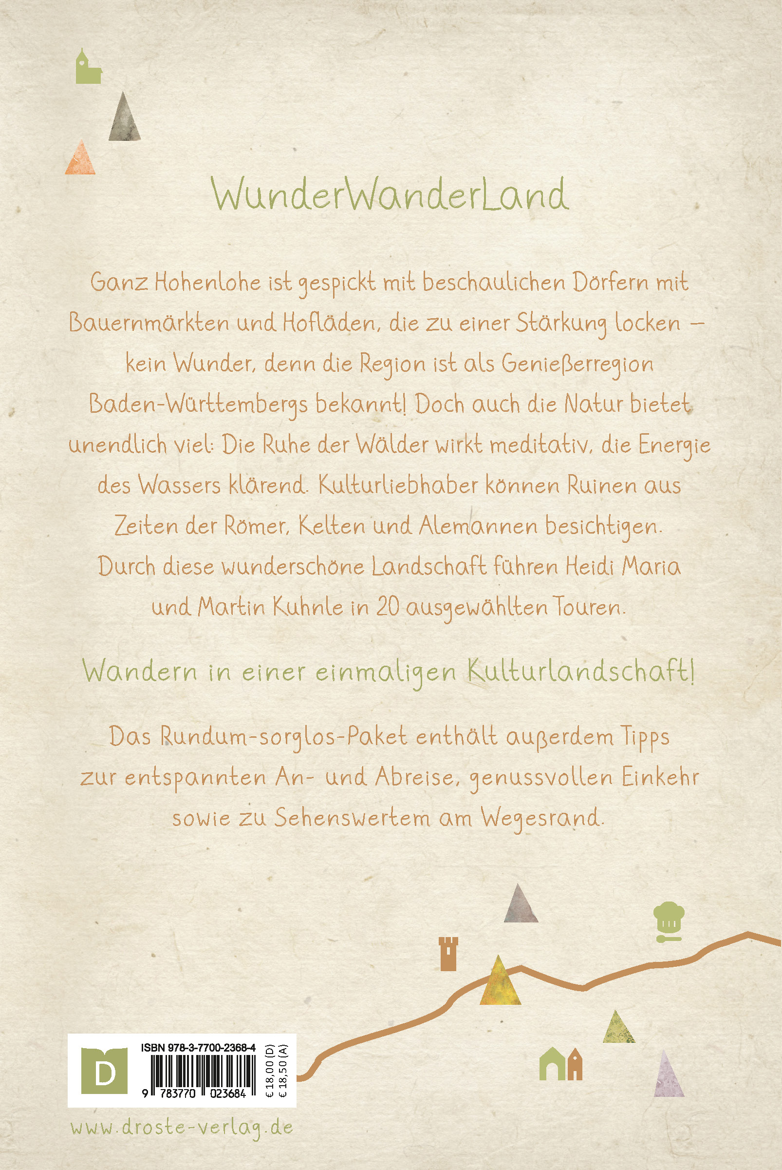 Heidi Maria und Martin Kuhnle wandern beruflich und privat leidenschaftlich gern. Gemeinsam hat das Ehepaar bereits einige Titel über ihre Entdeckungstouren in Süddeutschland veröffentlicht. Die Entspannungs- und Meditationstrainerin und der Wanderführer schätzen an der Hohenlohe besonders die Köstlichkeiten für den Gaumen - von A wie Apfel bis Z wie Zwetschgenmarmelade.