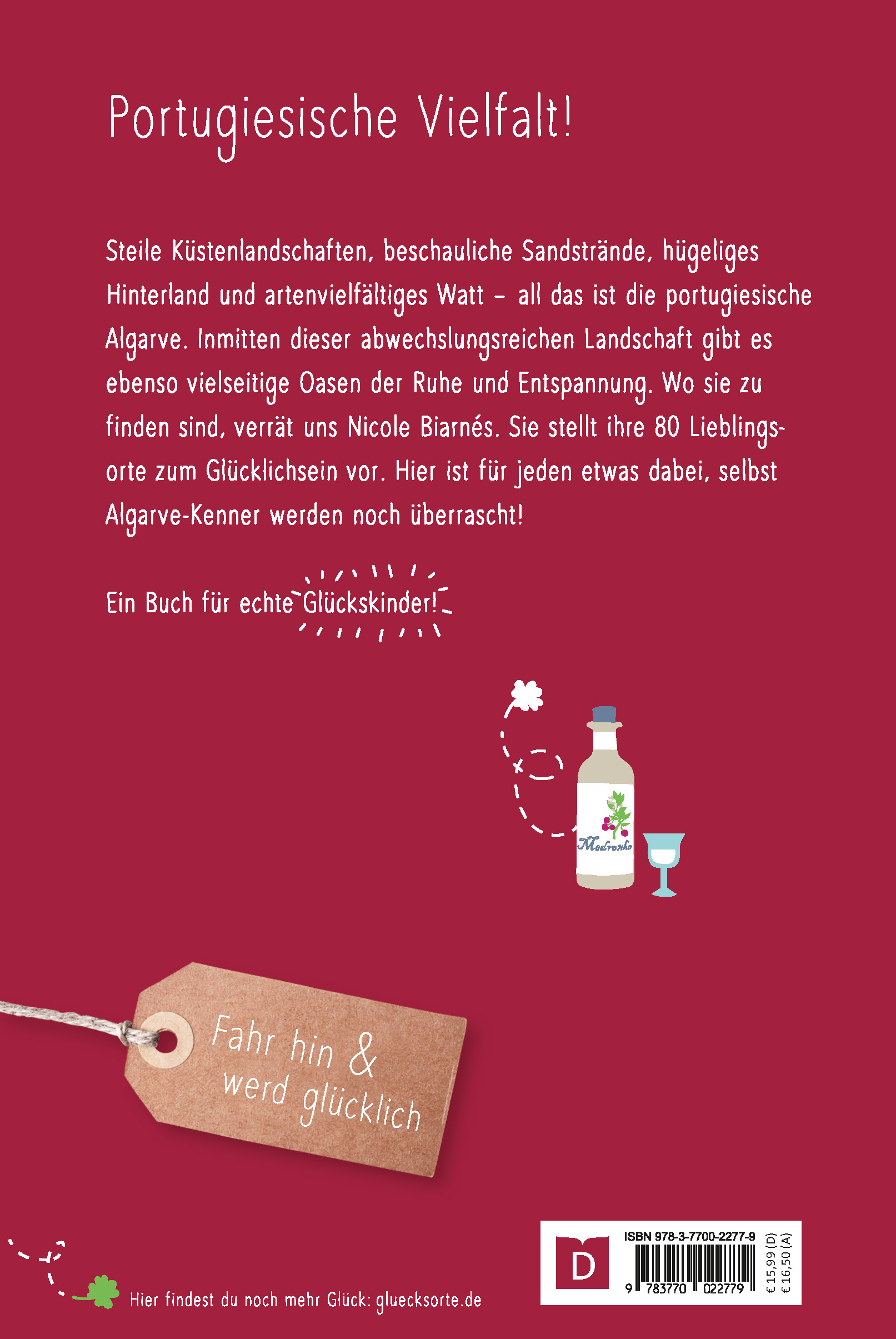 Steile Küstenlandschaften, beschauliche Sandstrände, hügeliges Hinterland und artenvielfältiges Watt – all das ist die portugiesische Algarve. Inmitten dieser abwechslungsreichen Landschaft gibt es ebenso vielseitige Oasen der Ruhe und Entspannung. Wo sie zu finden sind, verrät uns Nicole Biarnés. Sie stellt ihre 80 Lieblingsorte zum Glücklichsein vor. Hier ist für jeden etwas dabei, selbst Algarve-Kenner werden noch überrascht!